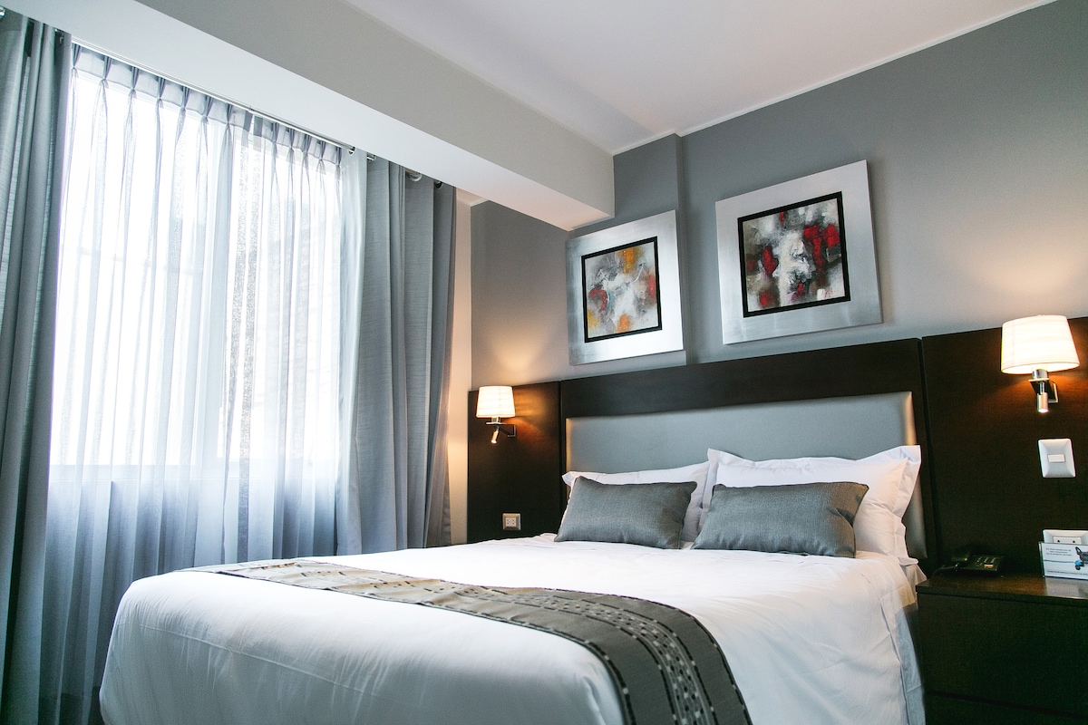 Przestronny i nowoczesny apartament typu Junior Suite z łóżkiem typu king-size w naszym hotelu Carrera , położony w dzielnicy Lince, w pobliżu centrum finansowego San Isidro. Odwiedź nas i ciesz się naszym 4-gwiazdkowym pobytem w samym sercu Limy, gdzie znajdziesz wszystko, czego potrzebujesz, aby poczuć się swobodnie! Nie ma znaczenia, czy podróżujesz służbowo, odkrywając nasz piękny kraj i miasto!