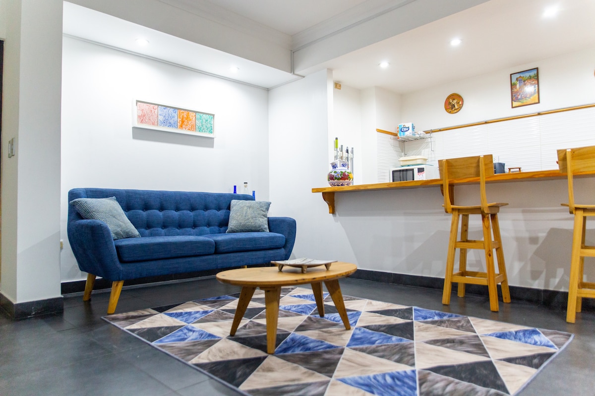 Zanurz się w peruwiańskiej kulturze w tym oszałamiającym apartamencie, pięknie urządzonym przez lokalnego artystę Ale Grau i położonym w pobliżu morza, w samym sercu Barranco, najbardziej tętniącej życiem dzielnicy Limy. Skorzystaj z naszego przewodnika, aby odkryć najlepsze galerie sztuki, muzea, modne bary, kawiarnie i światowej klasy kuchnię, w tym 3 najlepsze restauracje na świecie, dosłownie tuż obok! Samodzielne zameldowanie i wymeldowanie, bezpłatny parking, szybkie Wi-Fi, telewizor Smart TV, klimatyzacja, wspólna pralnia i wiele więcej!