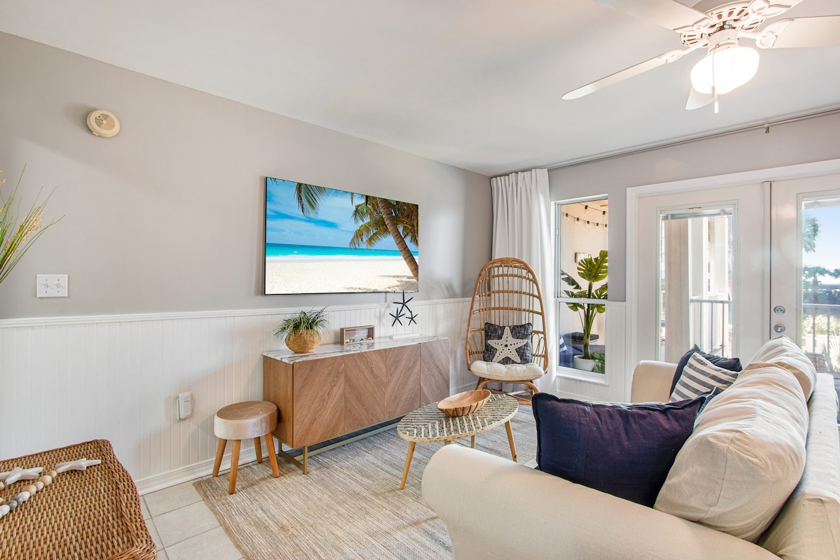 Zrelaksuj się i ciesz pobytem w nowo wyremontowanym apartamencie 1BR/1BA, wyposażonym w tętniący życiem nadmorski wystrój. Położony w ekskluzywnym kurorcie z bramą Purple Parrot, ten tropikalny raj oferuje beztroski styl życia na wyspie. Zaledwie kilka minut drogi od pięknych plaż, przystani i najlepszych restauracji znajdziesz wszystko, czego potrzebujesz do idealnego wypoczynku! Nasz lokal znajduje się zaledwie kilka kroków od rozległego odkrytego basenu z wodospadem grotowym, relaksującą wanną z hydromasażem na wyspie i dużą ilością miejsca do opalania.