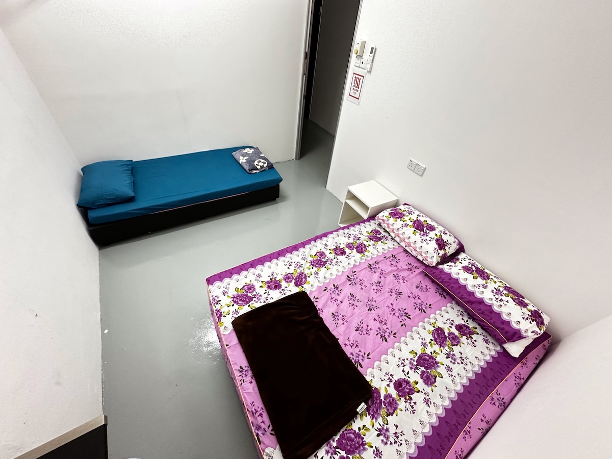 Przytulny pobyt w kontenerze w Skudai – kontener B Witamy w naszym nowym kontenerze z 2 sypialniami. Czyste, klimatyzowane i idealne na krótkie pobyty. Będziesz mieć własny kontener i miejsce parkingowe. Na terenie znajduje się jeszcze jeden dom i kontener, ale Twoja kwatera jest całkowicie prywatna. Wnętrze jest już gotowe, a na zewnątrz wciąż coś poprawiamy. Świetna lokalizacja: UTM Skudai – 5 min Paradigm Mall – 15 min Legoland – 25 minut Singapur (Tuas) – 30 min