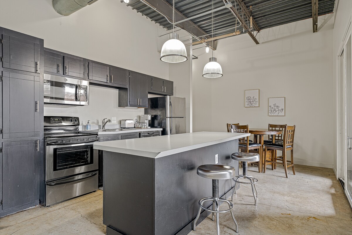1 BR/BA modern industrial loft on ground level in the heart of the Downtown Entertainment District. W odległości spaceru od restauracji/barów, City Municipal Building, St. Bernard 's Hospital i Courthouse. Mniej niż 2 mile od Arkansas State University. Około 4 mil od Nea Baptist Hospital. Łóżko typu king-size. Duży telewizor z płaskim ekranem w salonie i sypialni! Pralka/suszarka/zmywarka.