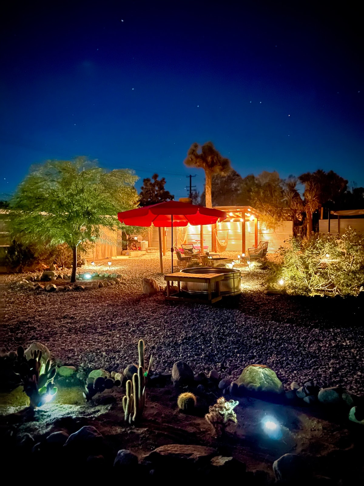 1.5 Acres! Joshua Trees Spa Firepit Games BBQ Art