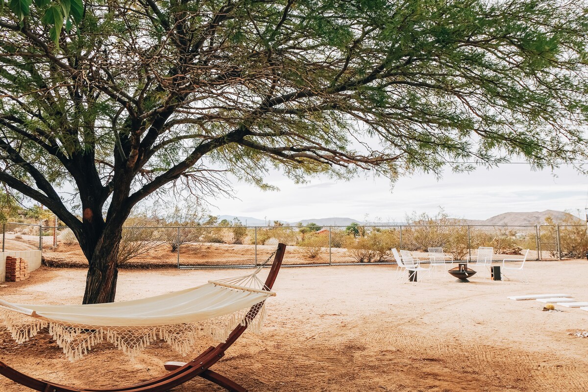 Odkryj Park Place by Homestead Modern, historyczną pustynną kryjówkę położoną na pięciu odosobnionych akrach graniczących z Parkiem Narodowym Joshua Tree. Uznany za najlepszy dla rodzin (Conde Nast Traveler) i miłośników przyrody (Travel Awaits), ten obiekt oferuje bezpośredni dostęp do parku, basen w stylu kowbojskim i wannę z hydromasażem, które pozwolą Ci spędzić niezapomniane dni na wędrówkach i obserwowaniu gwiazd. Ciesz się całkowitą prywatnością, pozostając blisko najlepszych sklepów i restauracji w okolicy.