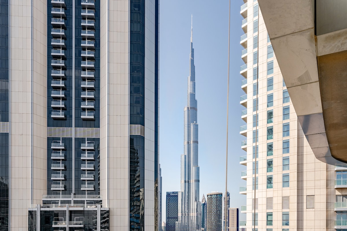 Widok na wieżę Burdż Chalifa i fajerwerki sylwestrowe | Elastyczna przestrzeń do spania, jogi, czytania, medytacji, automatyczne przełączanie, niezatłoczone, prywatne i ciche, estetyczne, luksusowe, w centrum miasta