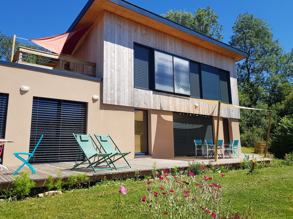 Domek bioklimatyczny, zbudowany w 2021 roku, znajduje się w wiosce liczącej 275 mieszkańców, na wysokości 900 m n.p.m. Dom jest zorientowany na południe, a jego duże okna wychodzą na otaczającą przyrodę. Wykorzystuje technologię domów pasywnych (wentylacja dwuprzepływowa, panele słoneczne, studnia kanadyjska, odzysk wody deszczowej). Bardzo słoneczny dom posiada duże drewniane tarasy, kwiaty i drzewa (1200 m2) oraz ogród warzywny, ze wspaniałym widokiem na dolinę.
