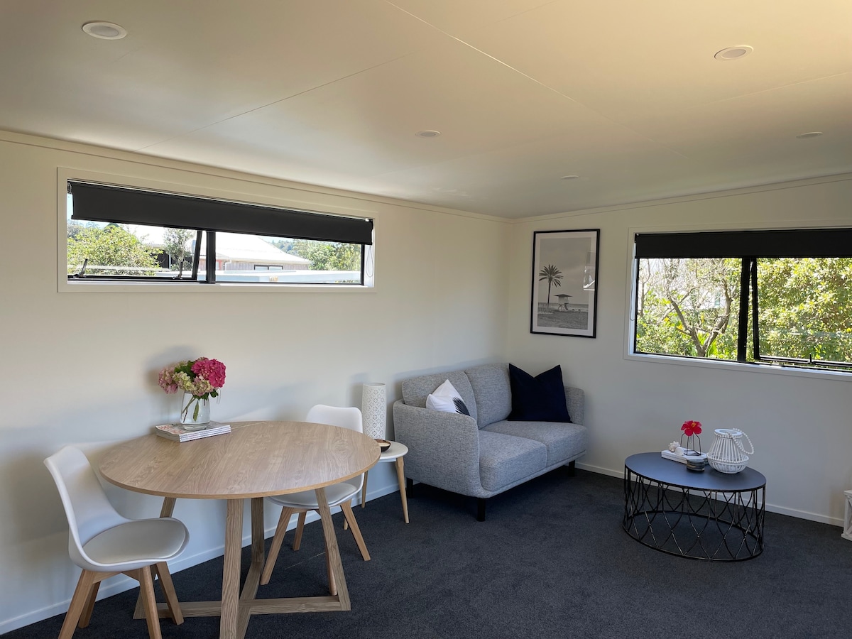 Self contained stand alone accommodation in quiet street, parking right outside the unit. Close to estuary, an easy 15 minute flat walk to main street. Open plan living measuring 7m x 5.3m with queen sized bed. Living area, spacious bathroom, towels and soap provided. Kitchenette has sink, microwave, toaster, toasted sandwhich maker, fridge, jug, bistro style table and chairs. Coffee, tea, milk, and sugar supplied.