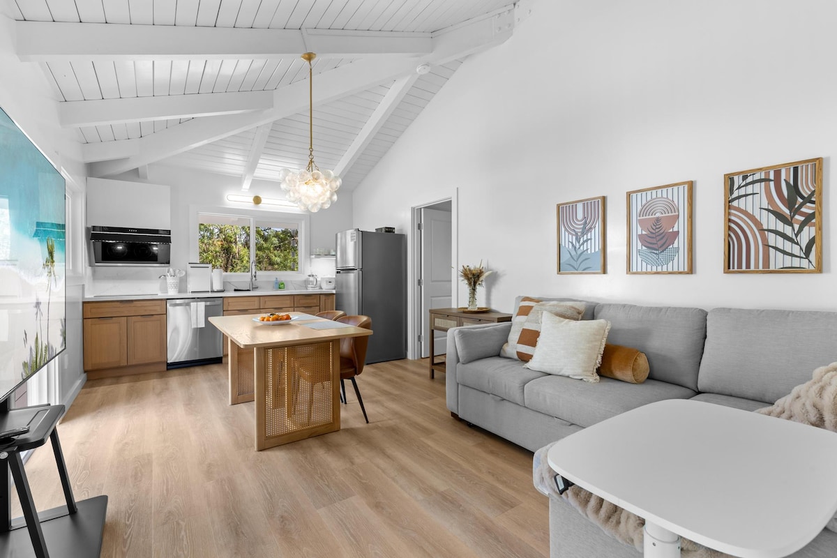 Odpręż się w naszym przytulnym domku dla gości w Konie – to idealna baza wypadowa na wyspie! To stylowe, 1-pokojowe miejsce może wygodnie pomieścić 2 gości i łączy w sobie klimat połowy wieku z urokiem starych Hawajów. Do dyspozycji gości jest prywatne patio, w pełni wyposażona kuchnia, klimatyzacja i telewizor Smart TV. Idealnie położony zaledwie 7 minut od lotniska i 14 km od centrum Kony – to doskonałe miejsce na przygodę na Wielkiej Wyspie.