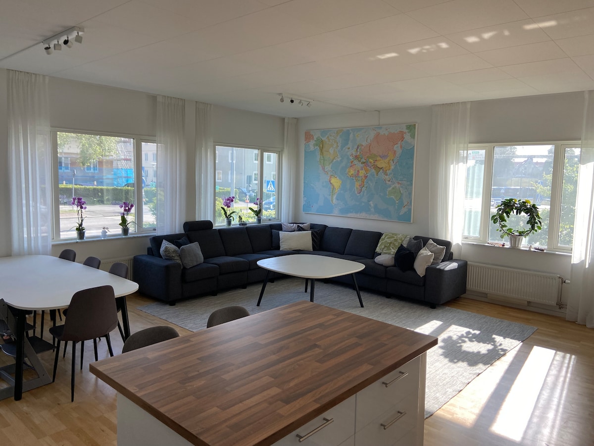 Ten przestronny trzypiętrowy dom szeregowy oferuje komfort i wygodę zaledwie kilkaset metrów od rezerwatu przyrody Delsjön. Salon otwiera się na taras, który cieszy się światłem słonecznym od wczesnego popołudnia do późnego wieczora. Pod tarasem znajduje się ogród przyjazny dzieciom i duży grill. Bezpłatny parking jest dostępny na naszej cichej ulicy. 15-20 minut do centrum miasta samochodem, autobusem, tramwajem lub e-hulajnogą.