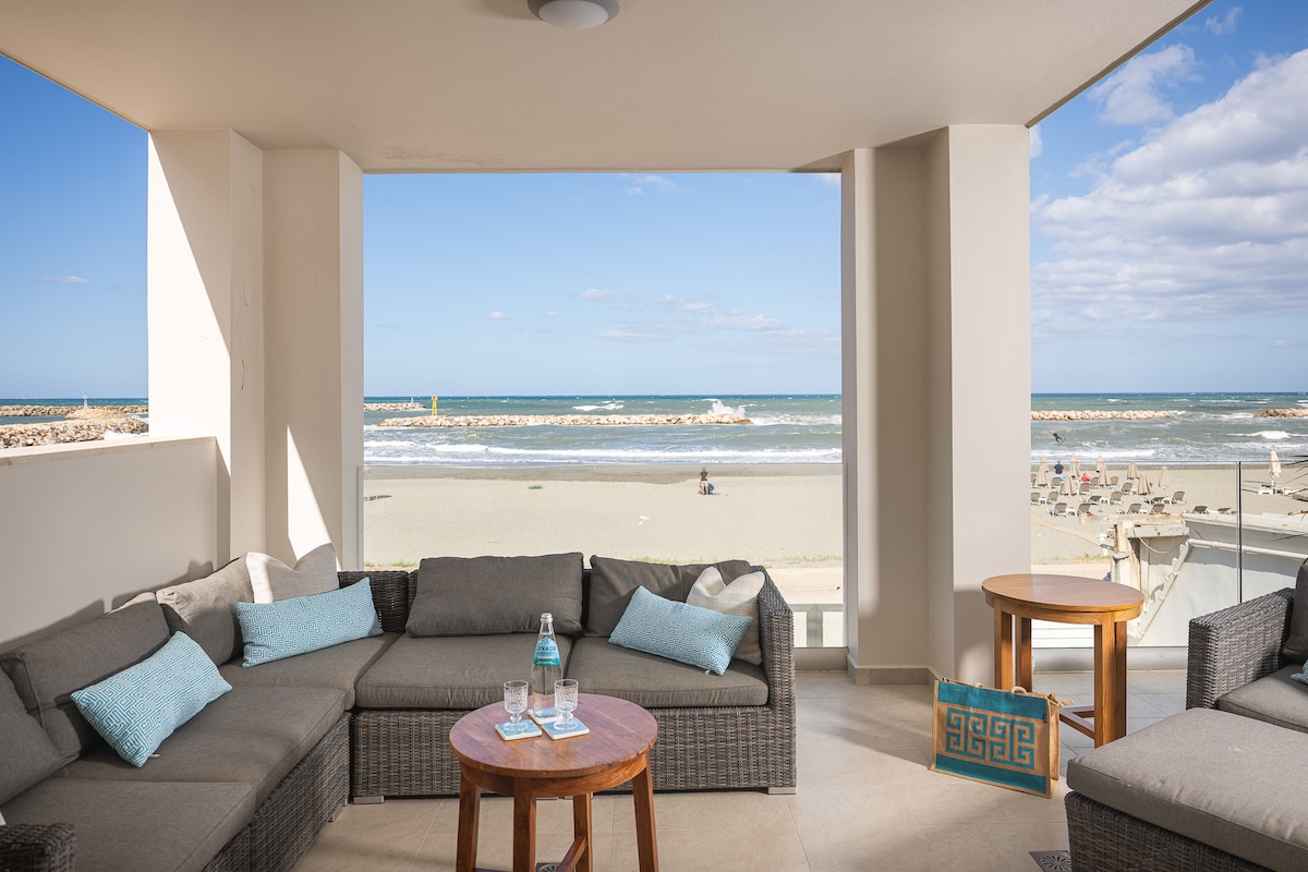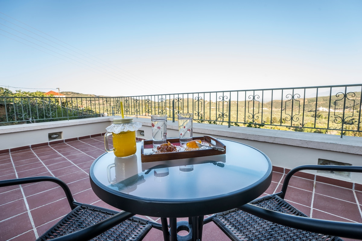 Witamy w Nami Suite | Alenia, luksusowym 45-metrowym apartamencie w spokojnej wiosce Ravdoucha, zaledwie 30 minut jazdy od Chania. Apartament ten, idealny dla maksymalnie 3 osób, łączy nowoczesne udogodnienia z zapierającymi dech w piersiach widokami na Morze Egejskie i otaczający krajobraz.