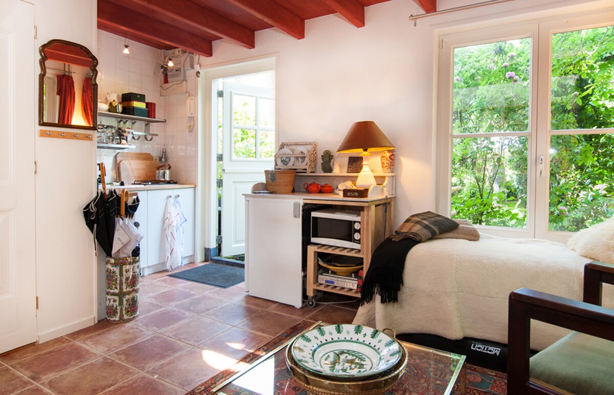 Pamiętaj, że adres to Achter Raadhoven 45A, zielone drzwi ogrodowe, a nie Achter Raadhoven 45, gdzie mieszka nasz sąsiad. De Boomgaard (Sad) znajduje się w otoczonym murem ogrodzie XVIII-wiecznego domu nad legendarną rzeką Vecht, gdzie narodziło się holenderskie życie wiejskie. Pensjonat jest kompletnym domkiem o wielkim uroku i wym komforcie. Goście mają własne wejście, a bezpłatny parking znajduje się kilka kroków od drzwi. Mają własną, całkowicie prywatną łazienkę i kuchnię.