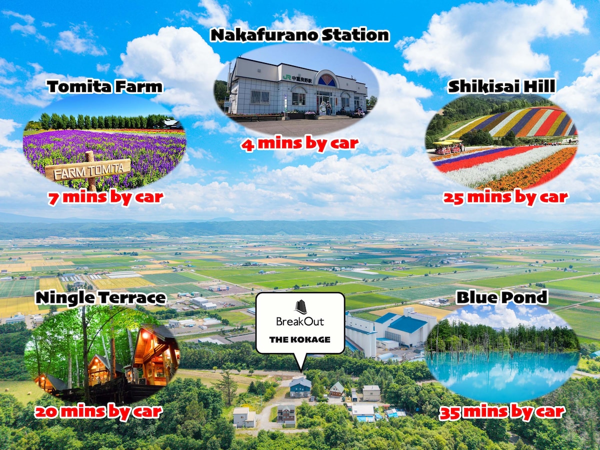◆ 特徴 【1】絶景ロケーションの高級ホテル ×広々とした豪華な間取り ×最大16名まるまる貸しきり 丘の上に立つ孤高のロケーションに位置し、一棟貸切りの高級宿で、富良野平野や北の峰を一望できます。 左に十勝岳、中央に富良野平野、右に北の峰を望む、四季折々の美しい景色が魅力です。 春の桜、夏のラベンダー、秋の紅葉、冬の雪景色、どの季節にも素晴らしい自然の美しさを体感できます。 【2】最寄り 中富良野駅 車5分 × ファーム富田 車8分 × 富良野スキー場 車19分 私たちのホテルは、中富良野のすぐそば。 レジャー・観光に最高のロケーション。 敷地内の駐車場も夏8台、冬季4台までご利用可能。 【3】充実した設備 施設内には洗面台が2つ、トイレが2つ、浴室(シャワー付き)が1つ、シャワールームが1つ完備されています。 広々としたキッチンとミニキッチンがあり、自炊も快適に行えます。 お庭にはBBQ設備やキャンプ用品もご用意しており、周囲の美しい自然環境の中で、リラックスした時間をお過ごしいただけます。 富良野の大自然を満喫しながら、心身ともにリフレッシュできる特別な場所です。