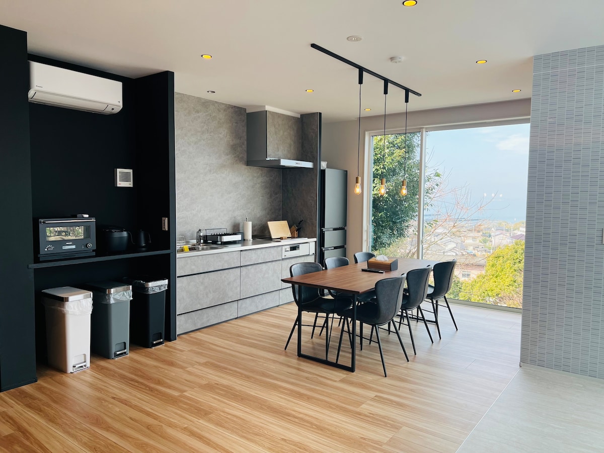 To relaksujące 4LDK w domu w stylu japońskim. To oddzielna przestrzeń ze spokojem ducha. To również przyjemność dla tych, którzy wracają do Japonii zdalnie lub tymczasowo za granicą. Pokój w stylu japońskim ze spokojnym salonem i ogrodem w stylu japońskim.Na drugim piętrze znajduje się pokój w japońskim stylu z 8 matami tatami, pokój w stylu japońskim składający się z 4 i pół maty tatami oraz 9-tatami w stylu zachodnim z fortepianem z widokiem na morze.Co powiesz na widok na morze, delektując się herbatą z werandą. Jest wiele pokoi, więc ciesz się swobodną podróżą z rodziną i przyjaciółmi.Jest to cichy i spokojny dom, w którym można pisać i czytać. W kuchni znajduje się grzejnik IH, garnek elektryczny, kuchenka ryżowa, lodówka, kuchenka mikrofalowa, toster, panele, naczynia i inne artykuły pierwszej potrzeby. Na 2. piętrze znajduje się pralnia i duża suszarka. Łazienka ma duże okna i wysoki sufit, a także przyjemna przestrzeń.Dostępne są również udogodnienia, takie jak szczoteczki do zębów, czepki i zestawy bawełniane. Jeśli właściciel dotrzyma czasu, odbierzemy Cię z dworca po przyjeździe.