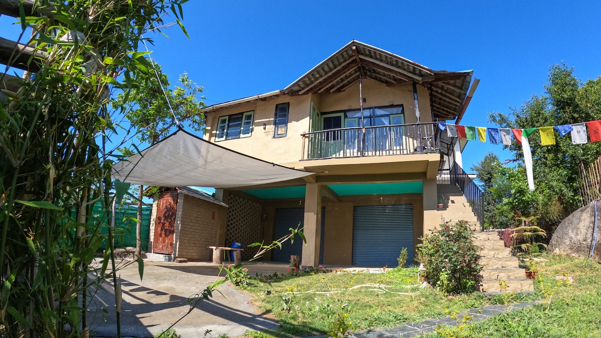 Ciesz się rustykalnym urokiem i nowoczesnym szykiem z naturalnymi akcentami z drewna i ziemistymi tonami, tworzącymi przytulną atmosferę, w samym sercu Dharamshali. ✨ Co sprawia, że nasz dom jest wyjątkowy Z naszego ogrodu roztaczają się wspaniałe widoki na pasmo górskie Dhauladhar. Nasz bujny ogród, pełen kwiatów i drzew owocowych, jest idealny na relaks lub poranną herbatę. Dogodna lokalizacja, lokalny targ, stadion HPCA, ogrody herbaciane i inne atrakcje znajdują się w promieniu 5 km, co ułatwia zwiedzanie i zakupy
