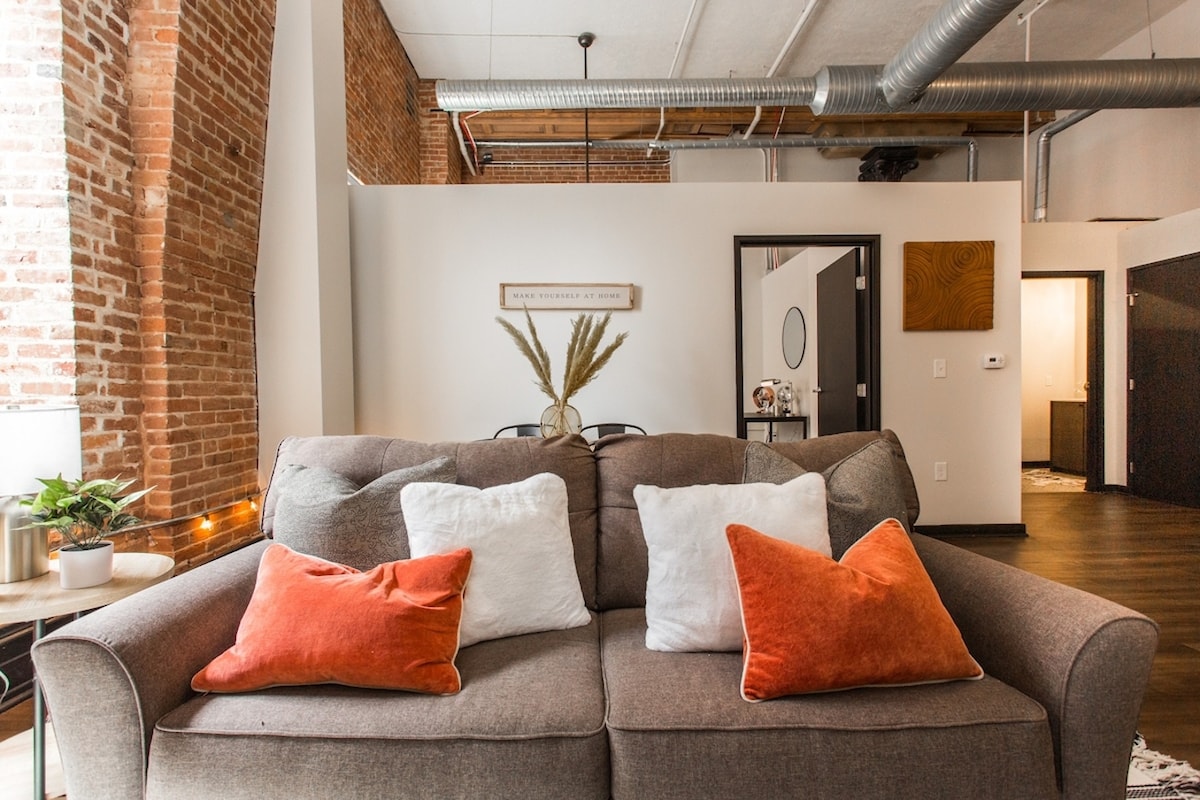 Discover a stunning historic loft in vibrant Independence Square, perfect for 5 guests. This modern, Scandinavian-inspired space features an open floor plan, high ceilings, a dedicated workspace with fast Wi-Fi, and a fully equipped kitchen. Walk to unique boutiques, local dining, and historic Truman sites, Chiefs, Royals and World Cup Games. Ideal for families, remote workers, or a stylish city getaway. Enjoy the blend of 1800s charm and modern comfort in this unique urban retreat.