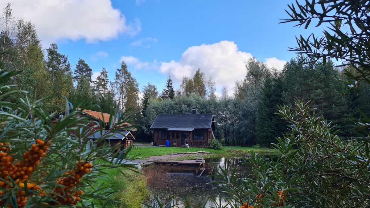 Ten przytulny domek zaprasza do spędzenia relaksujących wypadów i dłuższych pobytów w pracy zdalnej pośród pięknej i spokojnej fińskiej przyrody. Domek ma dwie przestronne sypialnie, dobrze wyposażoną kuchnię i dobrą saunę. Uroczy staw kąpielowy znajduje się zaledwie kilka kroków i schodów od domku. Jest dobre Wi-Fi, duży, słoneczny trawnik i żadnych sąsiadów w zasięgu wzroku – więc możesz pływać w swym urodzinowym stroju, jeśli chcesz :) Najbliższy sklep spożywczy znajduje się 12 minut jazdy od hotelu.