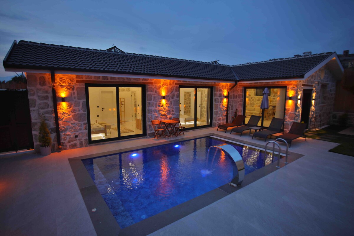 Kamienny dom z basenem i jacuzzi z widokiem na Kabak Bay