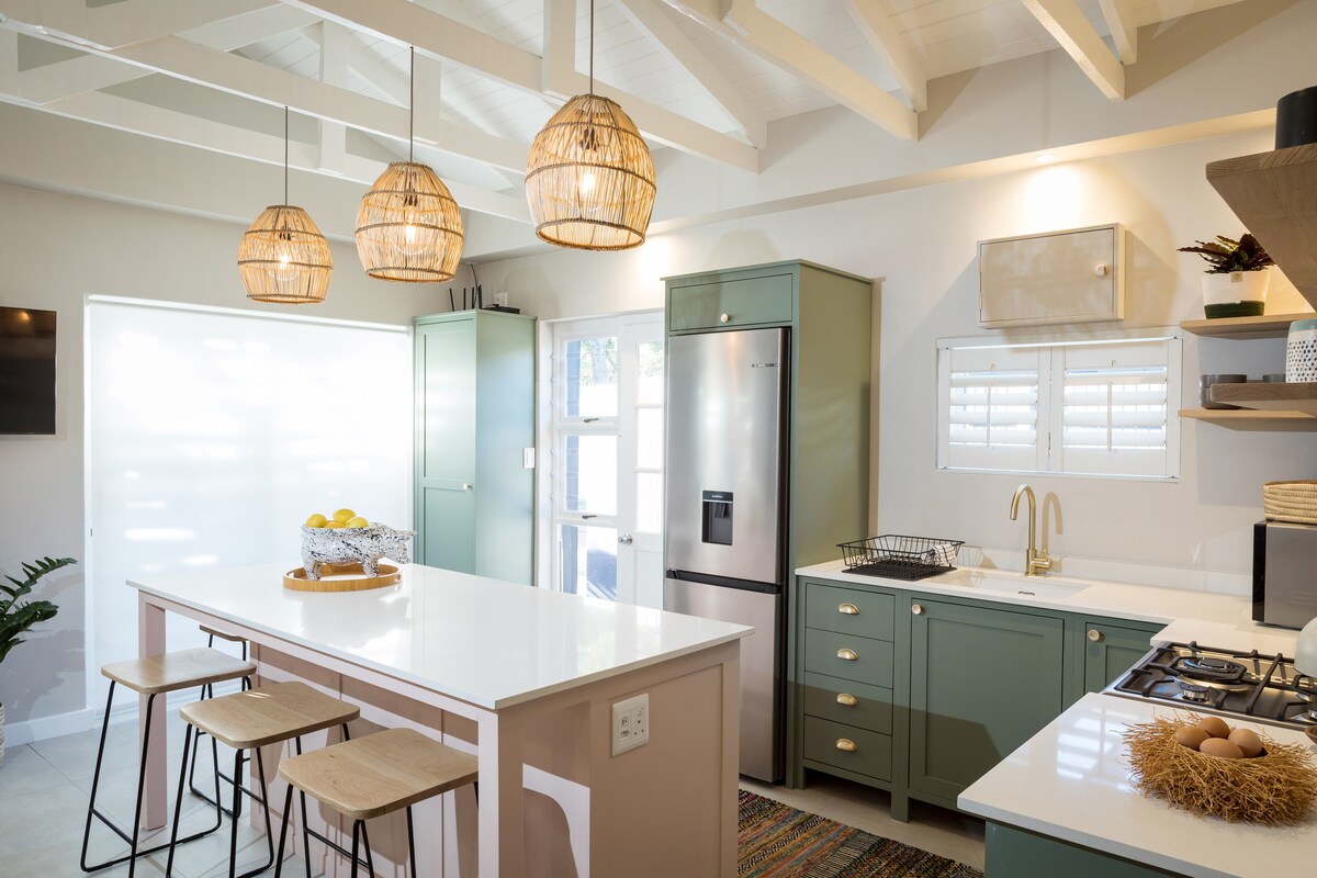 Ten nieskazitelny prywatny domek w Hout Bay znajduje się w niewielkiej odległości od pięknych plaż, spektakularnych górskich spacerów i wyśmienitych restauracji. Położony w spokojnej okolicy domek ma duży parking i własne wejście. Posiada dobrze wyposażoną nowoczesną kuchnię, prysznic wewnątrz oraz prysznic na zewnątrz na tarasie na te plażowe dni, dużo miejsca w szafkach i biurko. Jest dostęp do pralki, suszarki i sprzętu do prasowania. Szybki, nieograniczony internet światłowodowy.