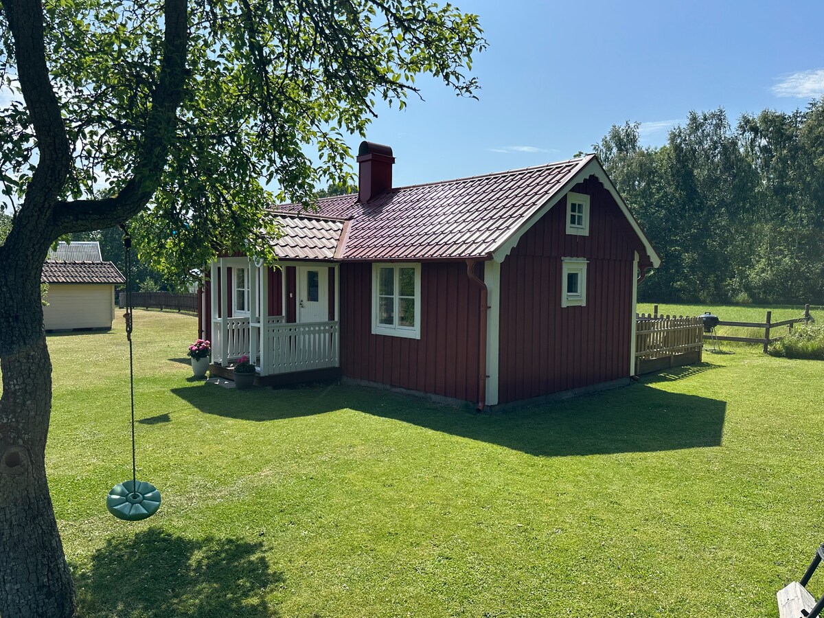 Odnowiony, uroczy domek z przełomu wieków. Udekorowany na Boże Narodzenie. Domek znajduje się w pobliżu głównej nieruchomości w bardzo cichej okolicy. Gospodarz mieszka sam i często wyjeżdża z miasta. Kuchnia z większością udogodnień i piecem na drewno. Salon z rozkładaną sofą o szerokości 140 cm. Do sypialni na poddaszu prowadzi drabina na górne piętro, a w niej znajduje się podwójne łóżko o szerokości 140 cm. Ogród z meblami ogrodowymi i grillem. Domek położony jest w pobliżu lasu, rezerwatu przyrody i szlaków turystycznych. 1 km do dobrze zaopatrzonego sklepu ICA. 10 km do jeziora lub morza