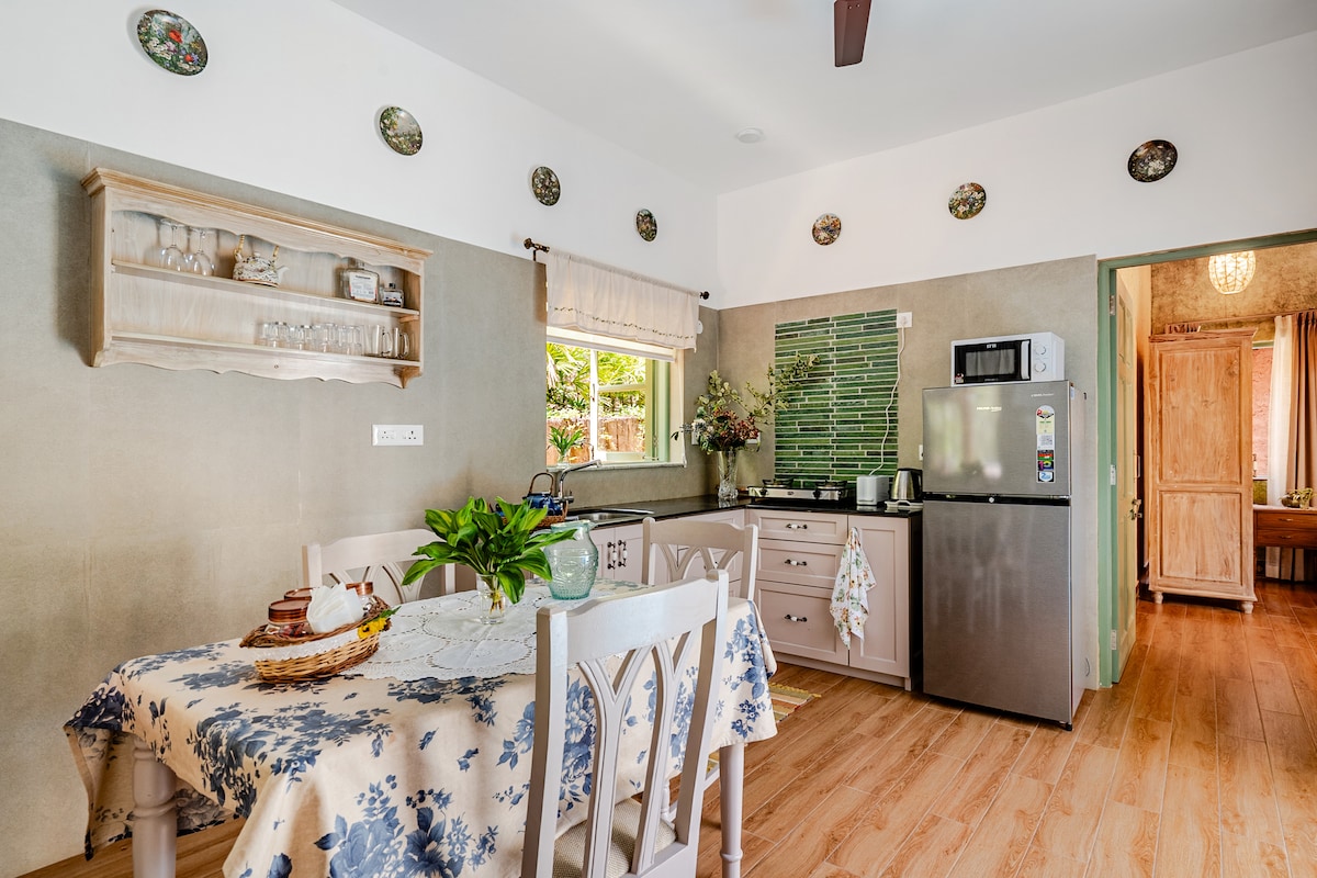 Odpocznij w spokoju w Nivrritii, przytulnej willi z 3 sypialniami i kuchnią, położonej wśród bujnych lasów i pagórkowatego krajobrazu przy malowniczej drodze Palolem–Agonda w Południowym Goa. Tylko 5–7 minut jazdy od złotych piasków plaży Palolem i spokojnej plaży Agonda. Obudź się, podziwiając zapierające dech w piersiach widoki na wzgórza i lasy, oddychaj świeżym powietrzem i odpręż się w objęciach natury. Odkryj autentyczną, mniej zatłoczoną atmosferę południowego Goa dzięki ukrytym perełkom, takim jak Butterfly Beach, Galgibaga i Talpona. Idealne dla rodzin, par lub małych grup.