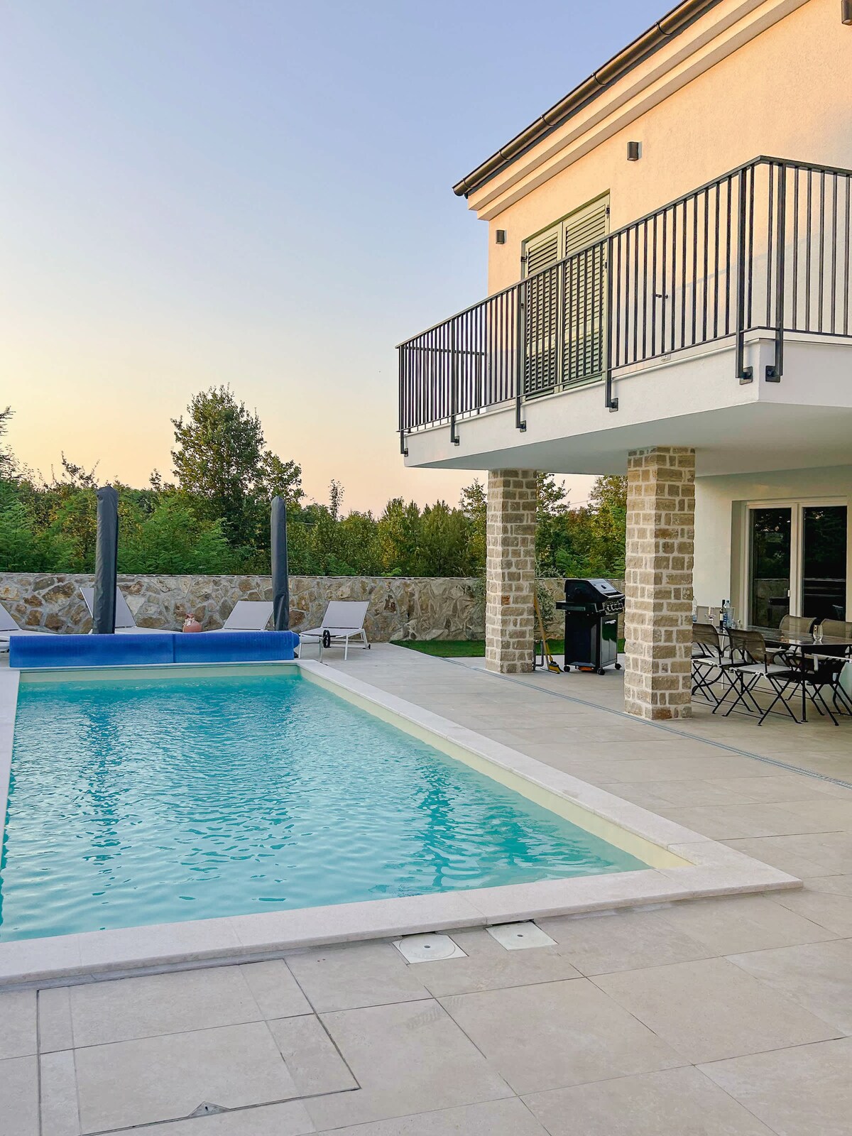 W pobliżu Poreča znajduje się wolnostojące SŁOŃCE Villa, z basenem i widokiem na morze. Ukończona w 2025 roku Villa SUN - wyposażona we włoskie meble, jest podzielona na dwa piętra. Szczególną atrakcją jest kuchnia z grillem przy basenie. Salon z jadalnią zaprasza do spędzenia miłych wieczorów. W przytulnych sypialniach znajdziesz dobry sen i pobudkę z widokiem na morze. Duży ogrodzony ogród dla dzieci i psów. Stacja ładowania elektrycznego samochodów na podwórku.
