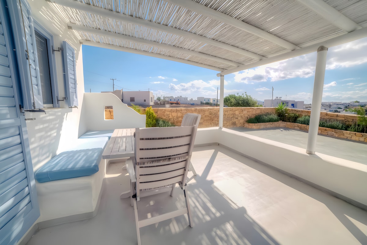 Mały i gustowny pokój, położony 400 metrów od portu Katapolon w miejscowości Rachidi, ma 16 m² na pierwszym piętrze i posiada duży, słoneczny balkon z widokiem na wzgórze Mountoulias, nie ma kuchni. Jest to idealne miejsce dla tych, którzy szukają miejsca do spania po dniu wycieczek na wyspie Amorgos