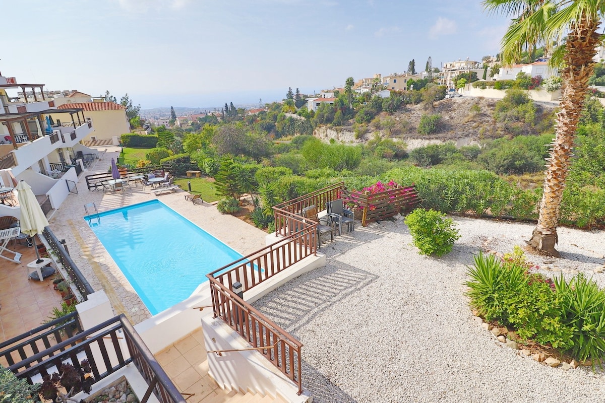 Olympian pool view apt, near to seafront &beaches