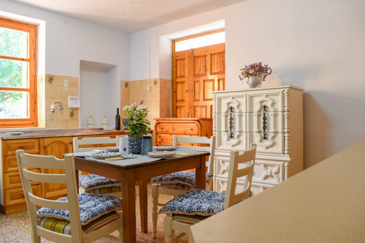 Feel welcomed home every time you arrive to this bright and airy house in southern Messinia! Free WiFi Free private parking This lovely accommodation offers 2 bedrooms each with a closet and 1 bath, plus a living space that extends to the kitchen and fireplace. Get the best of the property at the yard with the verdant lawn and high grown trees (and harvest your own fruits!) or relax and enjoy outdoor dining amid beautiful landscaping.