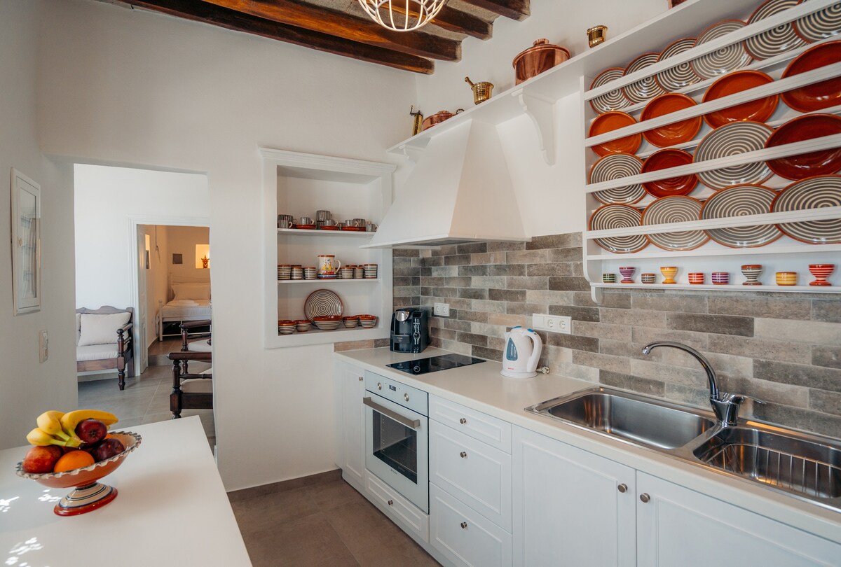 Our apartments are a complex of fully furnished traditional homes, built with love and respect for Cycladic architecture and local traditions. All studios feature private balconies where you can enjoy views of the Aegean Sea and the surrounding villages. Our warm hospitality, along with our homemade treats, will help make your stay truly wonderful.