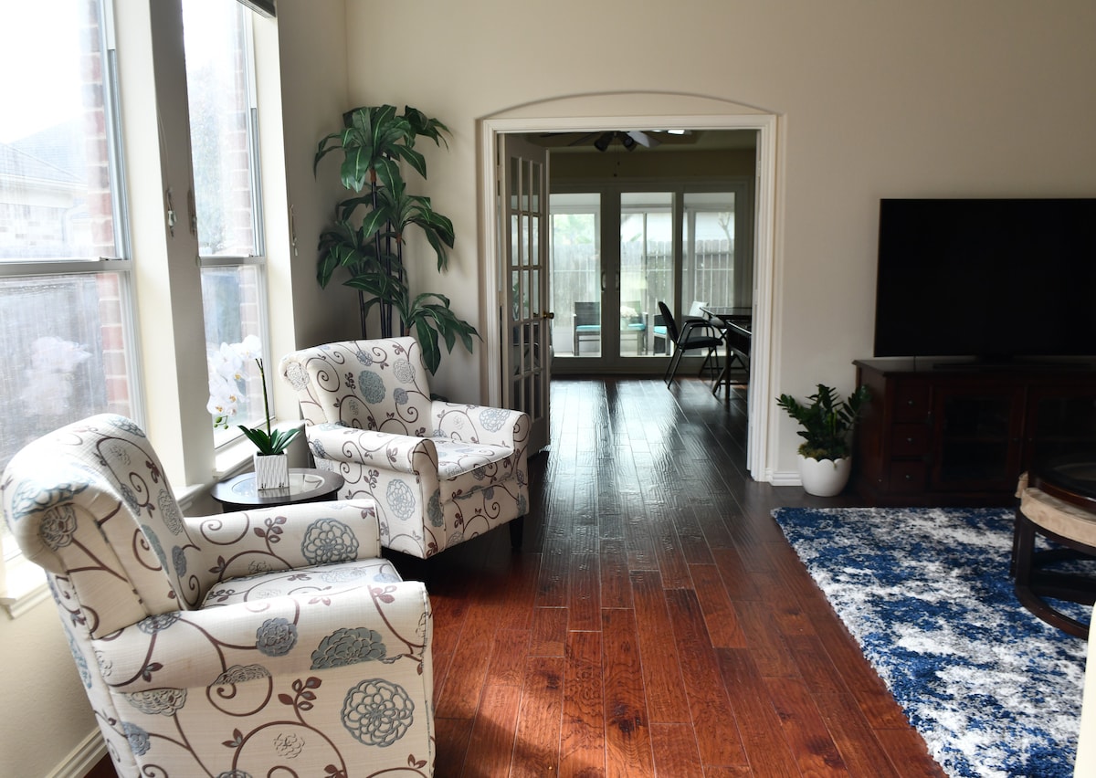 * Dom z 4 sypialniami, 3 łazienkami, 2 apartamentami i ładnym podwórkiem *Przestronny, a jednocześnie ciepły dom idealny dla rodzin, grup lub osób podróżujących służbowo *Wi-Fi i przestrzeń biurowa do pracy zdalnej *W pełni wyposażona kuchnia do przygotowywania pysznych posiłków * Wysokiej jakości pościel * Centralna lokalizacja w pobliżu autostrady * 5 minut do centrum handlowego Katy Mills, parku wodnego Typhoon Texas, wielu świetnych restauracji, barów i sklepów * 9 minut do Great Southwest Equestrian Center * Łatwy dostęp do autostrady I-10
