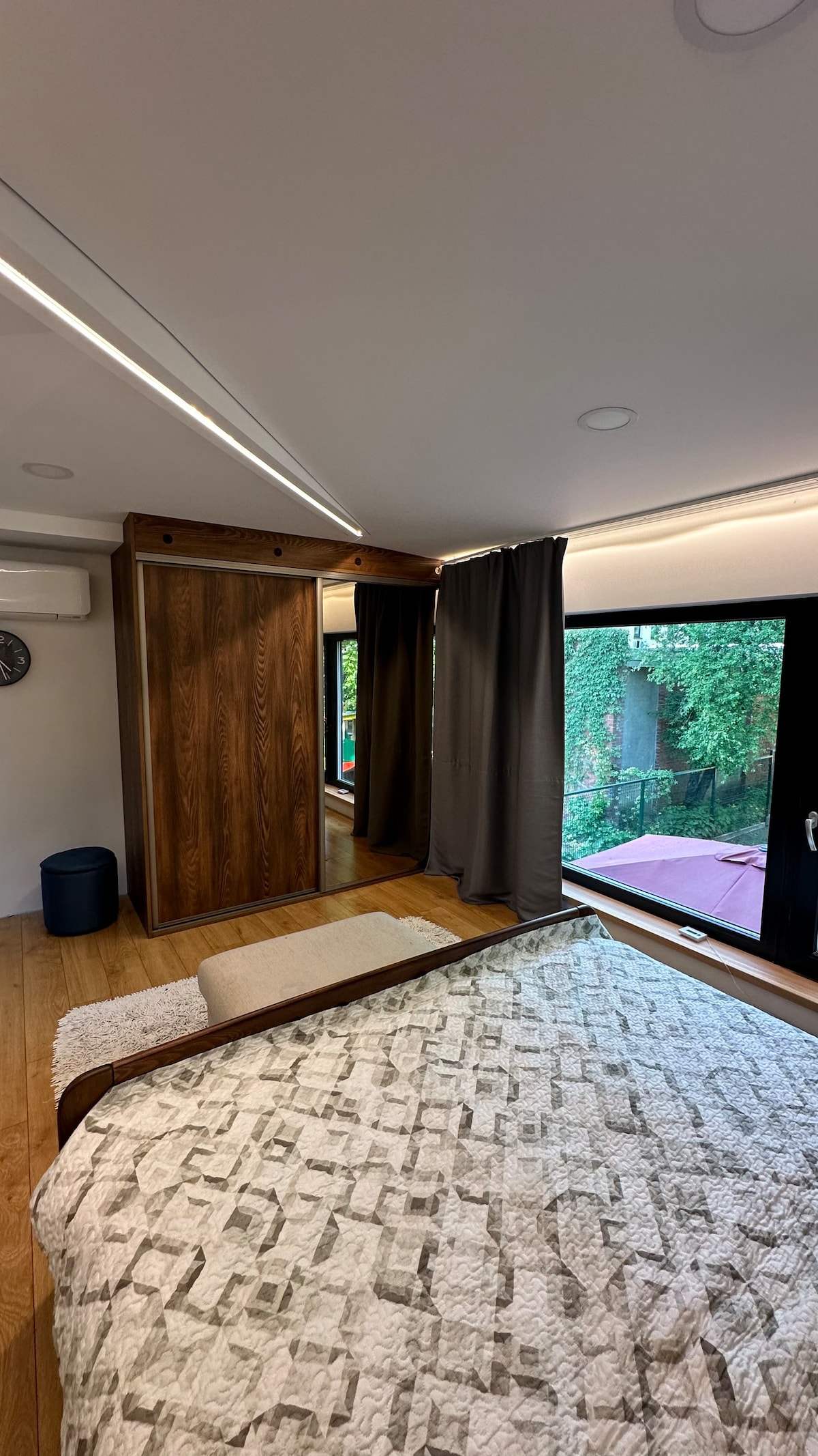 Przestronny (80 m²) i wyjątkowy apartament z tarasem o powierzchni około 35 m², z którego roztacza się panoramiczny widok na Kowno. Będziesz mieszkać na najwyższym piętrze, bez sąsiadów w pobliżu. Apartament znajduje się obok parku Kalniečiai. Jest również dobry dostęp do lotniska w Kownie. Na tarasie na dachu znajduje się miejsce do grillowania i meble ogrodowe. Wewnątrz apartamentu znajduje się kominek, duża narożna wanna, podwójne łóżko, rura do striptizu, telewizor i w pełni wyposażona kuchnia.