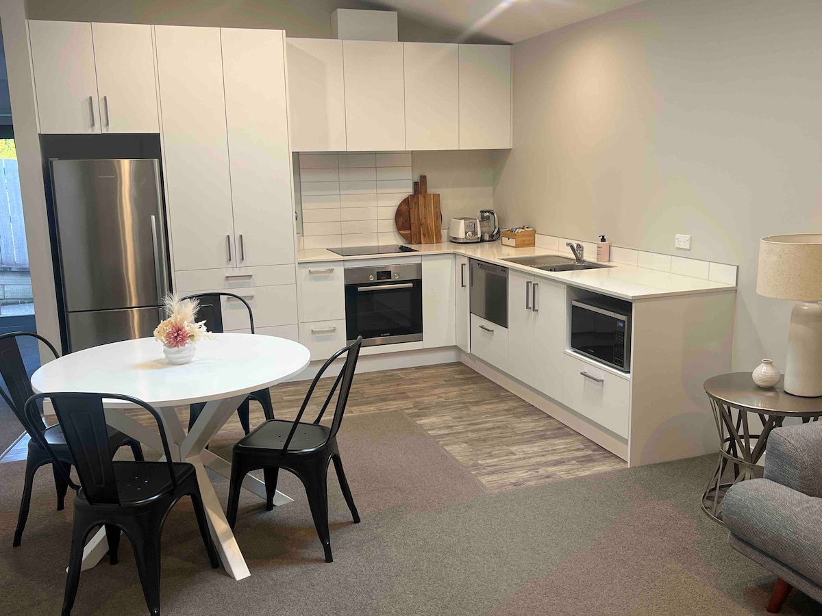 Oddychaj świeżym wiejskim powietrzem w tym nowoczesnym miejscu. Na zewnątrz dom ma elegancki industrialny wygląd i prywatną wannę na świeżym powietrzu, a wewnątrz wnętrze jest utrzymane w stylu butikowym, z neutralnymi szarościami i drewnianymi akcentami. Dom znajduje się przy typowej nowozelandzkiej wiejskiej drodze. W otoczeniu gospodarstw mleczarskich i sadów kiwi, goście mogą zobaczyć rolników przy ich codziennej pracy. Możesz pomachać im, gdy przejadą obok w swoich traktorach.