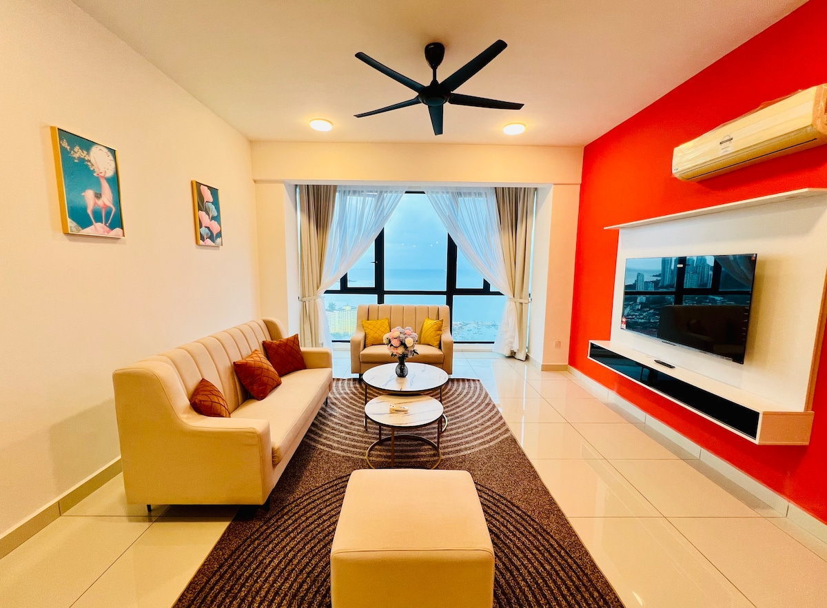 93sqm 2BR Seaview Duplex Condo with Sunrise Views in Georgetown-Maritime Suites ★ Prime location-10 mins drive to George Town heritage‑area ★ Top-Tier hair dryer ★ 1 Free Indoor Carpark with 24-hrs security ★ High-Speed WiFi ★ EV Charger available(fees apply) ★ Free access to Swimming Pool & Gym ★ F&B, groceries and laundry within walking distance — plus a seafront promenade for jogging and relaxation ★ Ideal for medical travel-10mins by car to Loh Guan Lye Hospital, Gleneagles & Island Hospital