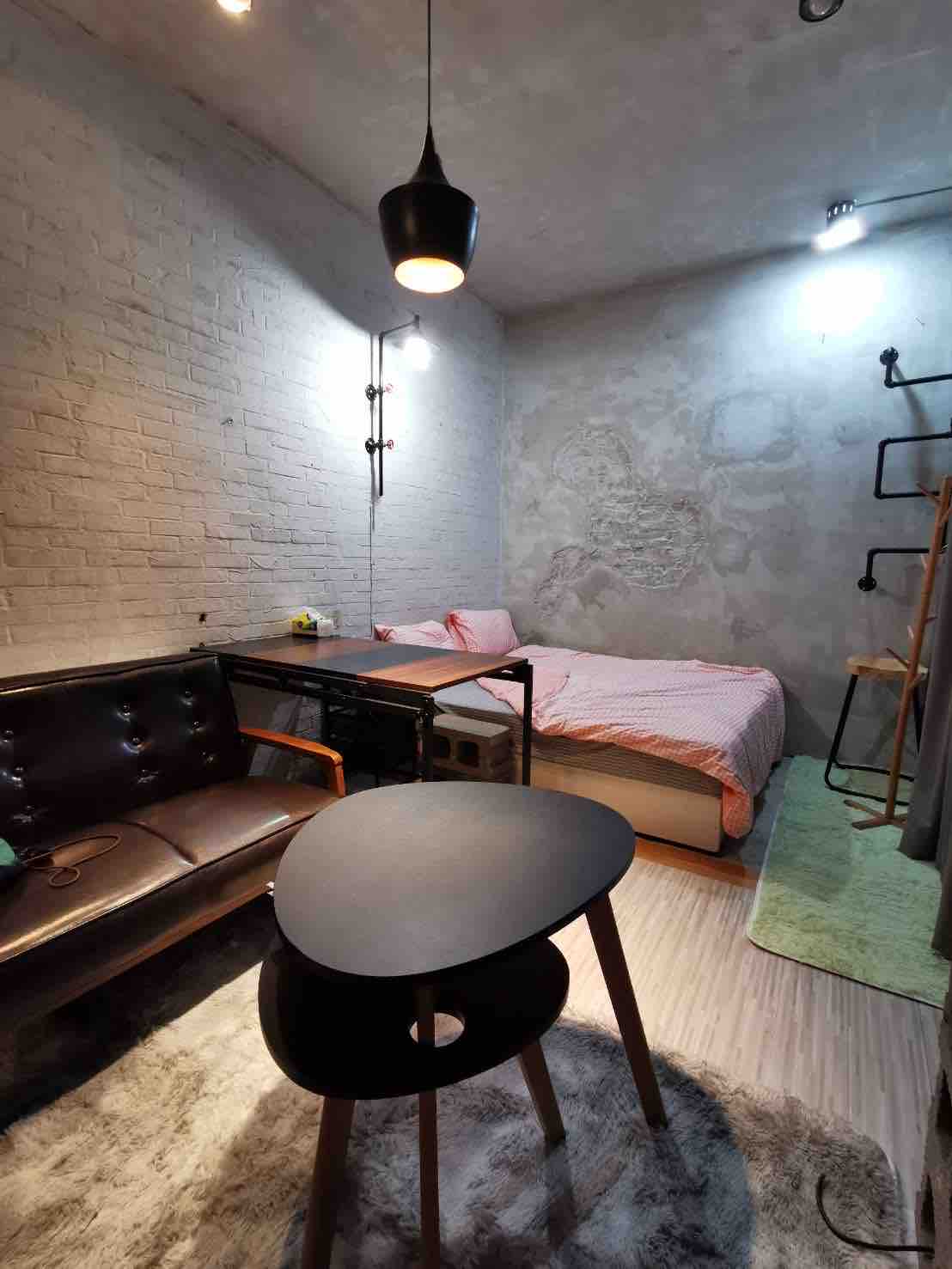 訂房後,入住前48小時就能看到入住密碼及細節 若22人入住 若你有更多人要住,可以選擇301(5-6人)+樓下的203(2-3人)+205(2-3人)。+102(4人)201都在同一棟 降價!降價!太挑剔不喜歡工業風的客人或嫌太擠的朋友,不要訂。 陽台:陽光 、洗衣機 、室外桌椅、晾衣桿、冷氣室外機 房間:小煮鍋 洗碗精、碗筷、叉子、湯匙 、盤子、杯子、熱水瓶(到一樓有冷熱溫飲水機裝水喝) ~( ̄▽ ̄)~* 新的大金冷暖氣 書桌、高腳椅、二人座沙發、抱枕、牆壁櫃子可拉下來的折疊餐桌、二層冰箱、一張標準雙人床+一層軟床墊+床單(大部份是無印風)+2枕頭、床頭看書燈、全身鏡、鞋架、WiFi 電視、Apple TV+看電影Netflix 👀+mod電視台 獨立浴室:毛巾 吹風機 拖鞋 浴巾 韓國進口的洗髮精 洗面乳 沐浴乳 潤絲精 卸妝油 化妝棉 牙膏 乳液 面霜 等化妝品 ;(**但請自備牙刷,並不主動提供牙刷**) 只歡迎不抽煙的朋友在這個特殊的重工業風設計 樓梯間有熱溫冰飲水機 坐29-30分鐘的火車到南港,就有捷運(MRT)