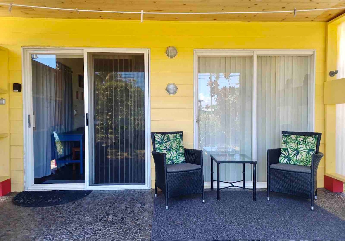 Licencjonowany wynajem wakacyjny na małej farmie bananowej 1 milę od plaży z czarnym piaskiem Kehena, jednego z najmniej rozwiniętych wybrzeży Hawajów. Łóżko typu King, klimatyzacja, kuchnia, osłonięte lanai, prysznic na zewnątrz i wanna z hydromasażem. W pobliżu można zobaczyć lawę z 2018 r., popływać, nurkować i wędrować. Znajduje się w wiejskiej dzielnicy Kalapana Seaview. Najbliższy sklep 10 minut, miasto z usługami znajduje się Pahoa, 20 minut drogi stąd. Hilo, 45-60 minut drogi stąd. Volcano Park 1 godzina. Cała wyspa jest dostępna na jednodniowe wycieczki.