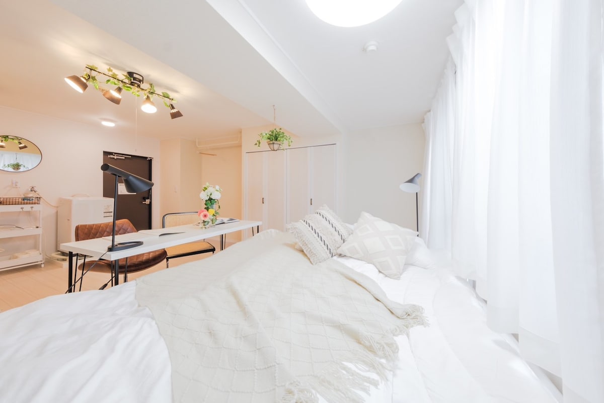 Spokojne, nowo wybudowane mieszkanie Japandi Studio|Blisko JR・metro|Pralka i suszarka|Winda|Przechowalnia bagażu