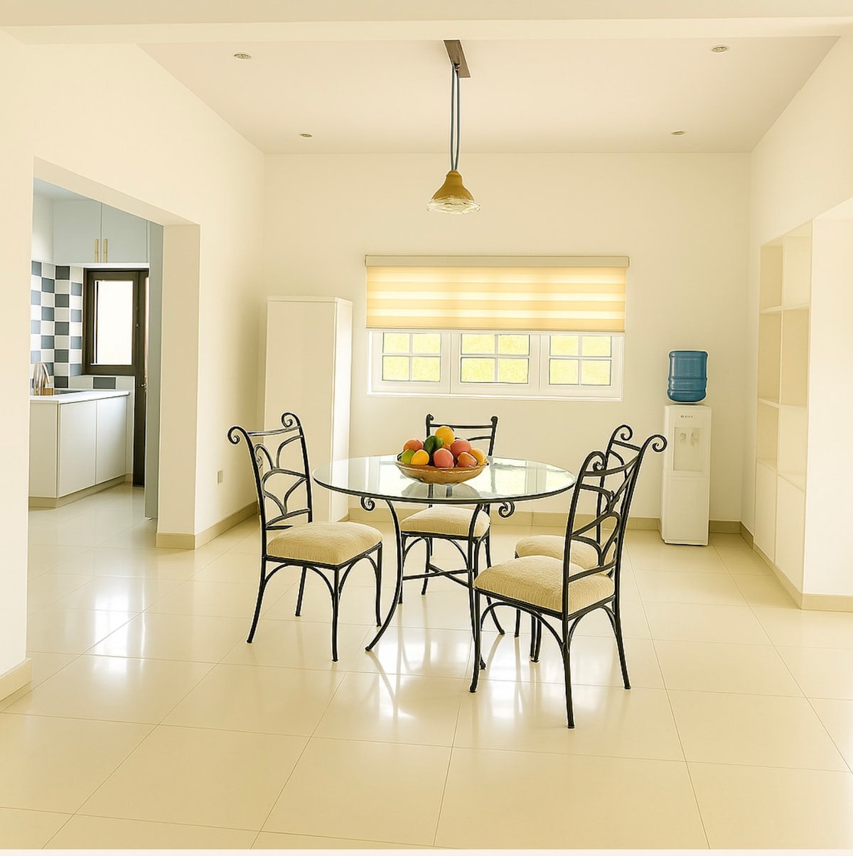 Forget your worries in this spacious and serene space. Tastefully decorated and fully furnished modern 3 bed house with scenic mountains views available at Regent village. Please note property is at the top of a hill but is fully accessible by paved road from the main highway. Perfect for: Remote workers, expats, travelers, and business visitors. Wi-Fi Guest Toilet ACS Water heaters Utensils Solar power Spacious parking Security guard CCTV Electricity & water