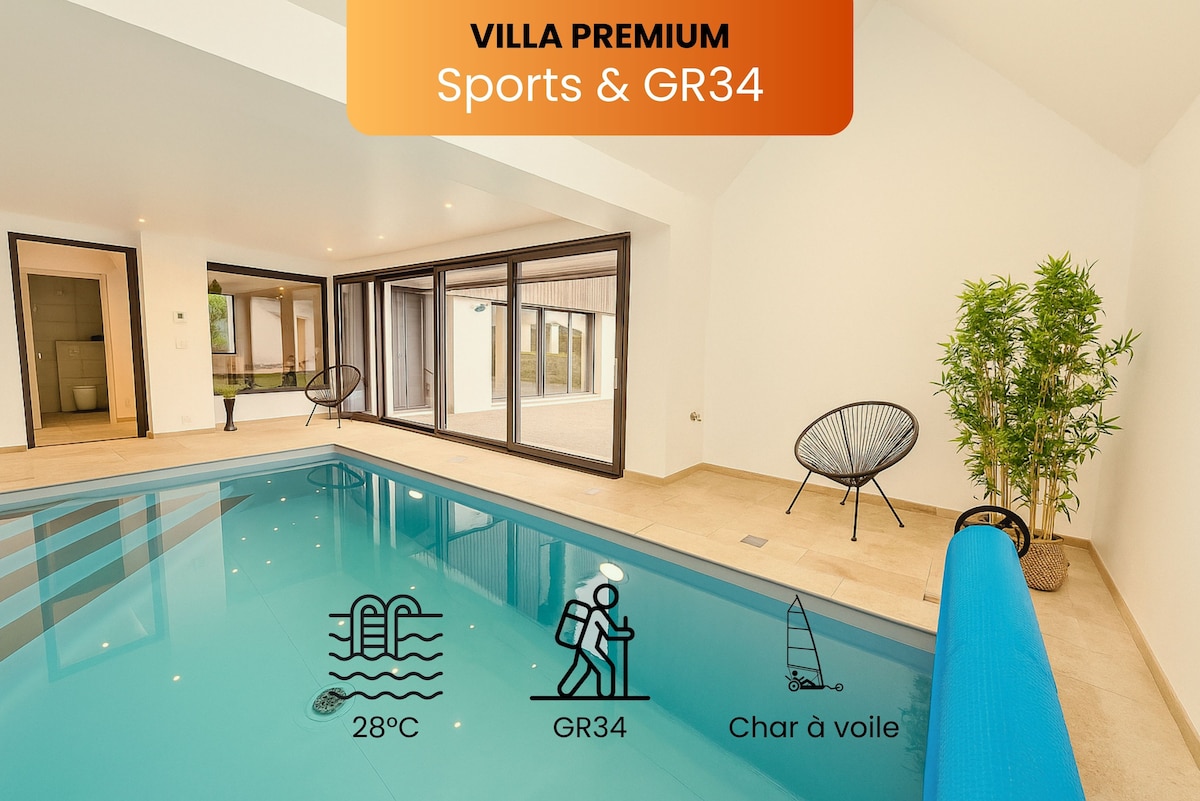 Domek Gwen ha du z basenem, 2 kroki od morza