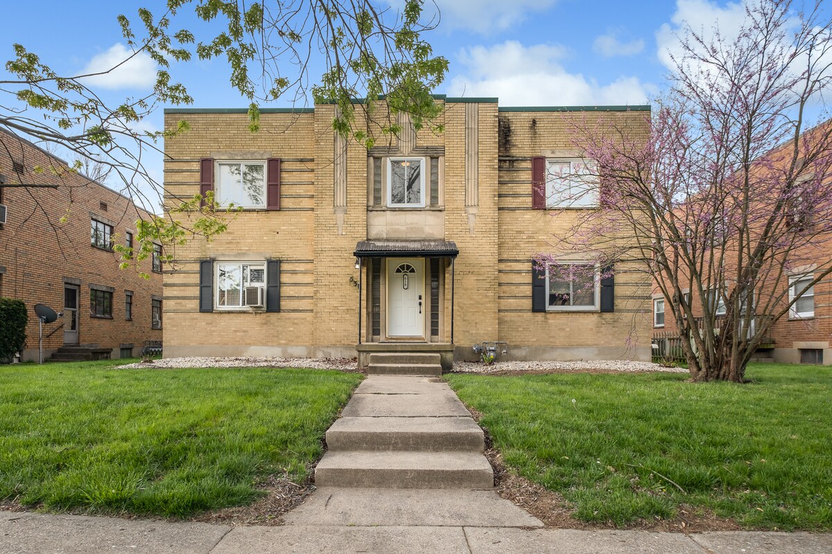 Ciesz się własnym apartamentem z dwiema sypialniami na pierwszym piętrze w spokojnym budynku z czterema mieszkaniami. Jest skromnie urządzony, nieskazitelnie czysty i przytulny. Ta lokalizacja nie może być bardziej dogodna! W odległości spaceru od dwóch sklepów spożywczych, sklepów detalicznych i The Fraze Pavilion. Dziesięć minut jazdy do szpitala Kettering, szpitala Miami Valley, centrum Dayton i Uniwersytetu Dayton. 15-20 minut jazdy do bazy lotniczej Wright Patt. Umeblowane i wyposażone we wszystko, czego potrzebujesz.