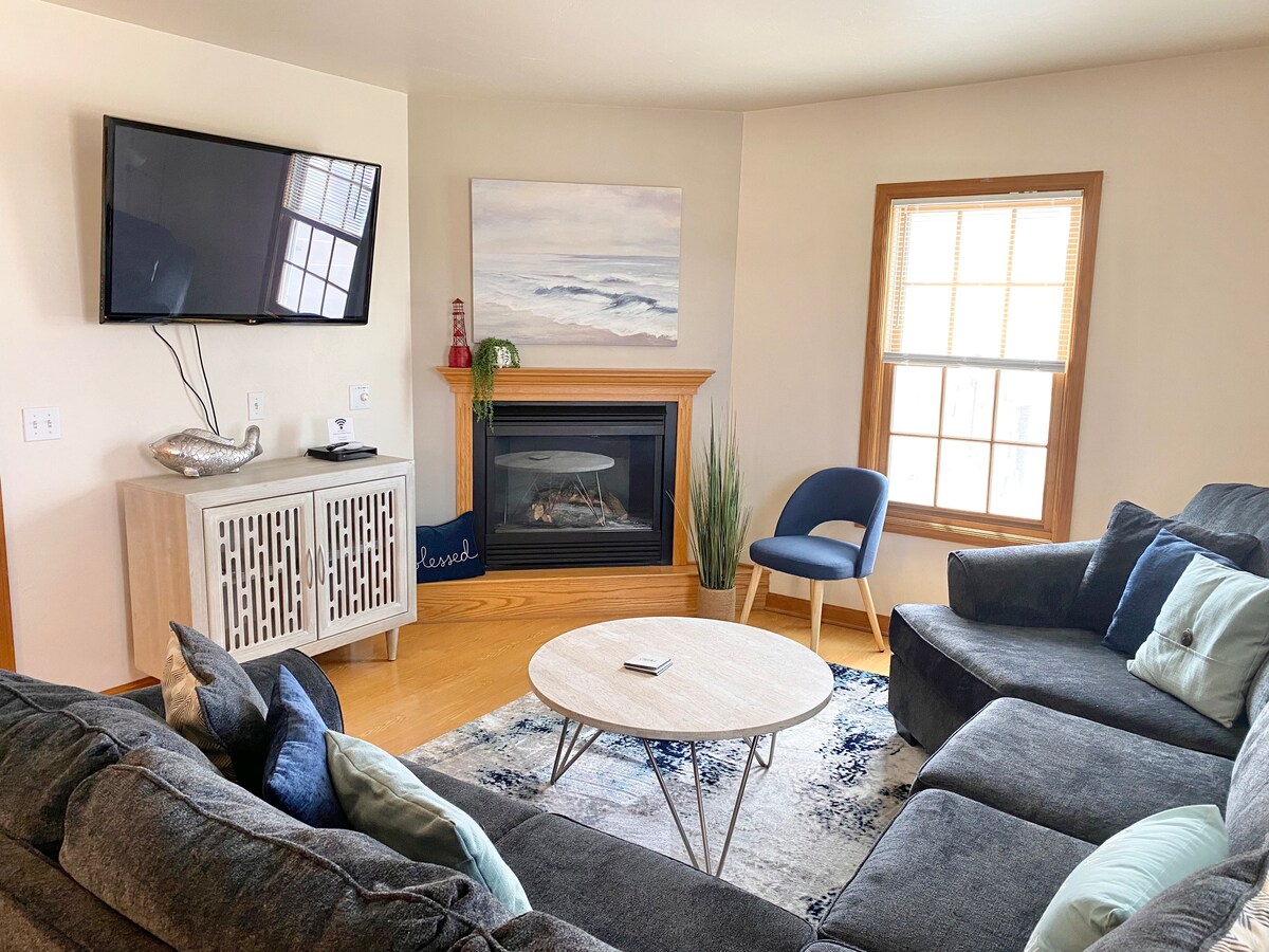 Ciesz się zapierającym dech w piersiach widokiem na jezioro Michigan z każdego w pełni odnowionego domu z 4 sypialniami/ 2 łazienkami, który jest przeznaczony do całkowitego relaksu i zabawy. Zabierz ze sobą całą rodzinę, aby cieszyć się wodami przyjaznymi dla pływania, a nawet tarasem słonecznym na dachu. Ten dom jest idealny na wypoczynek nad jeziorem. Zrelaksuj się i podziwiaj wspaniałe widoki na wschód słońca z szeregu przestrzeni na świeżym powietrzu! Palenisko na podwórku. Zaledwie kilka kroków od publicznej plaży i placu zabaw w Selner Park.