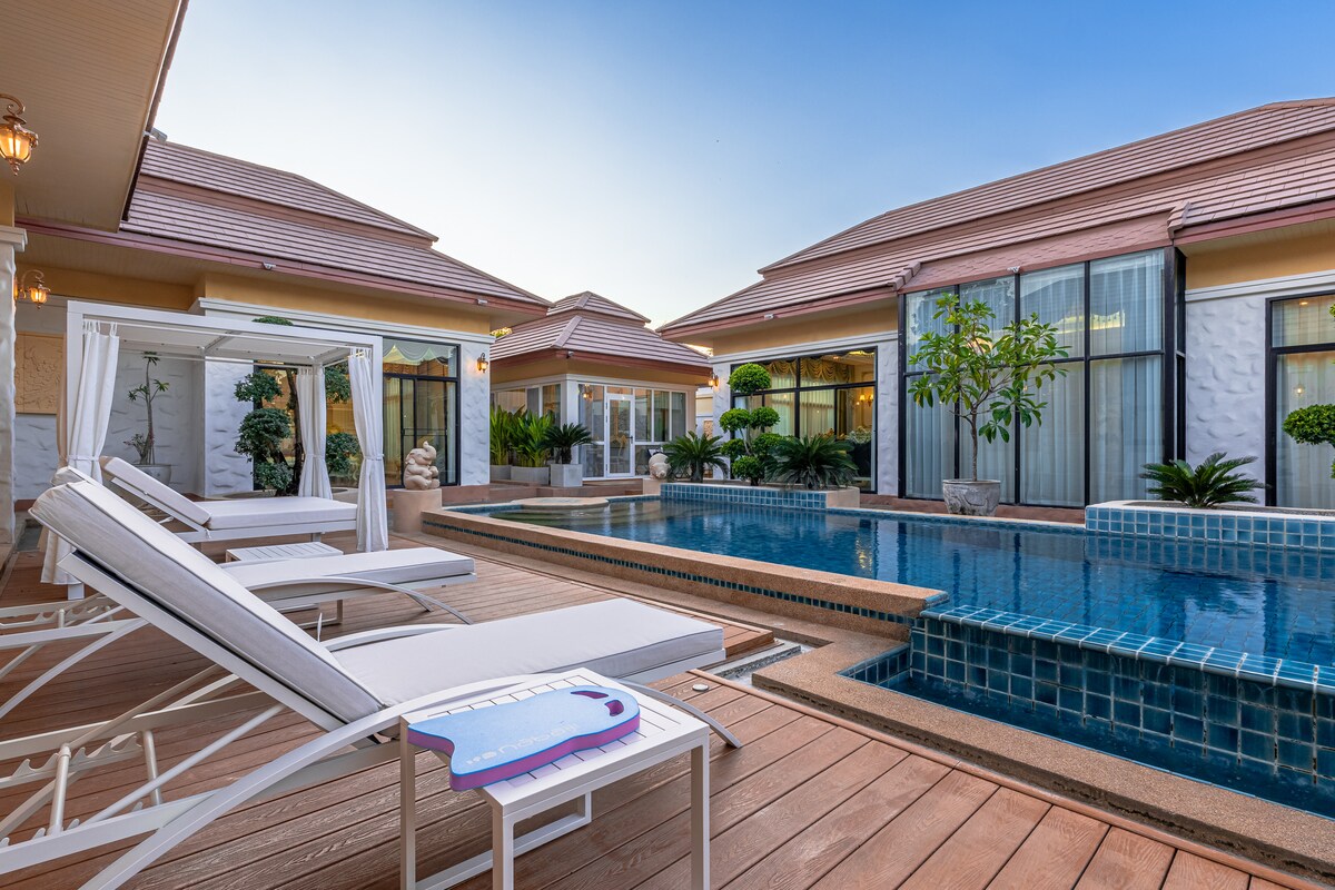 Szukasz przestronnej willi z ogromnym prywatnym basenem w spokojnej okolicy Pattaya? Jeśli tak, to może być idealne miejsce na wypoczynek. Wyobraź sobie relaks przy dużym basenie, wylegiwanie się na zewnątrz pod gołym niebem lub popijanie porannej kawy na przewiewnym balkonie. W domu czeka na Ciebie komfortowa pościel i udogodnienia na poziomie 5-gwiazdkowego hotelu – wszystko to w całości do Twojej dyspozycji.
