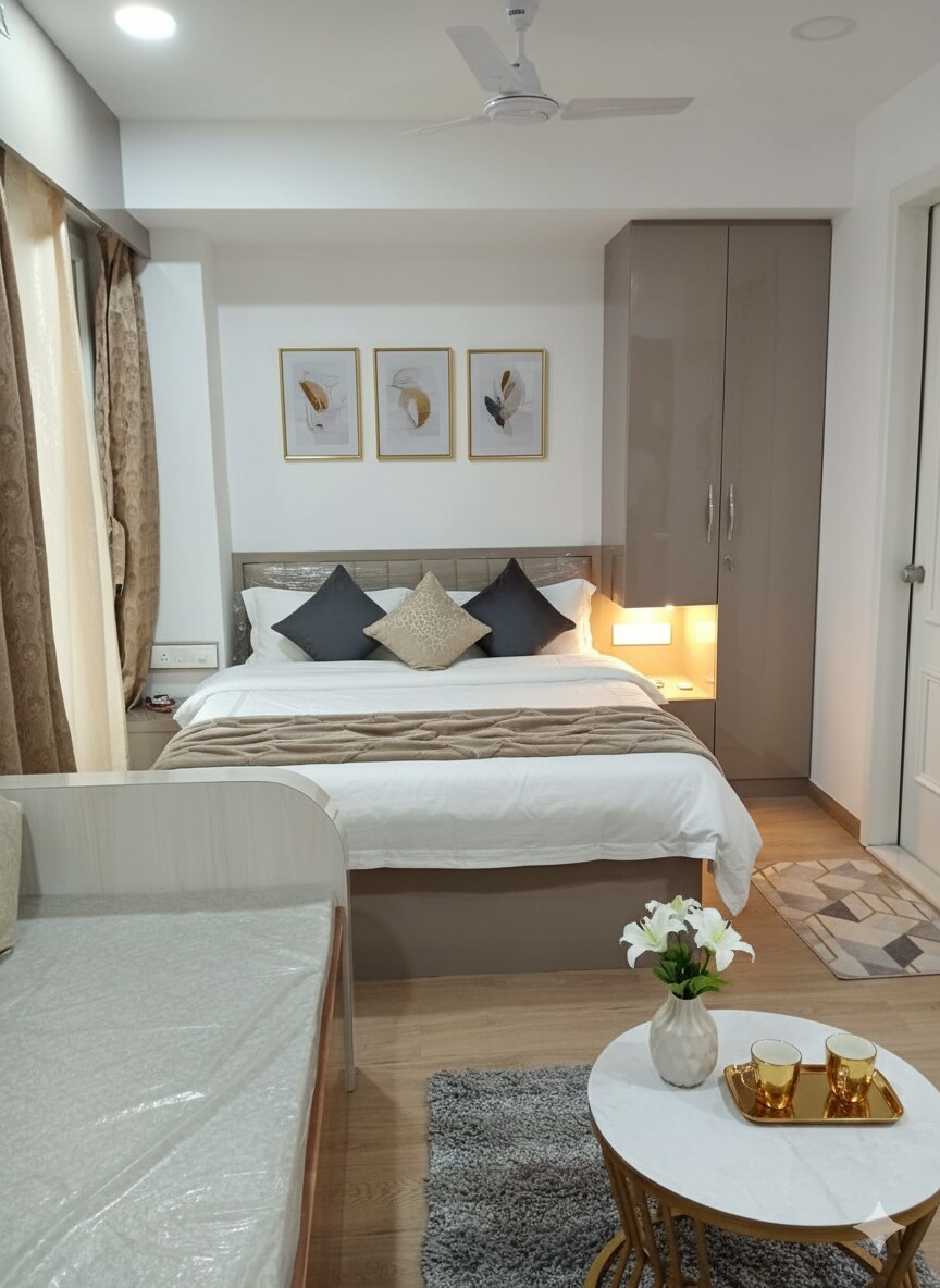 Airport Avenue – zaledwie 5 minut spacerem od lotniska w Pune! Witamy w nowoczesnym studio w pobliżu lotniska! Ta stylowa przestrzeń została zaprojektowana z myślą o komforcie i wygodzie. Znajdziesz tu przytulne łóżko, prywatną łazienkę, kompaktowy aneks kuchenny, szybkie Wi-Fi i inteligentny telewizor. To idealne miejsce na przerwę w podróży, oczekiwanie na wczesny lot lub krótki pobyt. Niezależnie od tego, czy lądujesz późno, czy wylatujesz wcześnie, to najlepszy wybór. Napisz do mnie, aby uzyskać szczegółowe informacje.