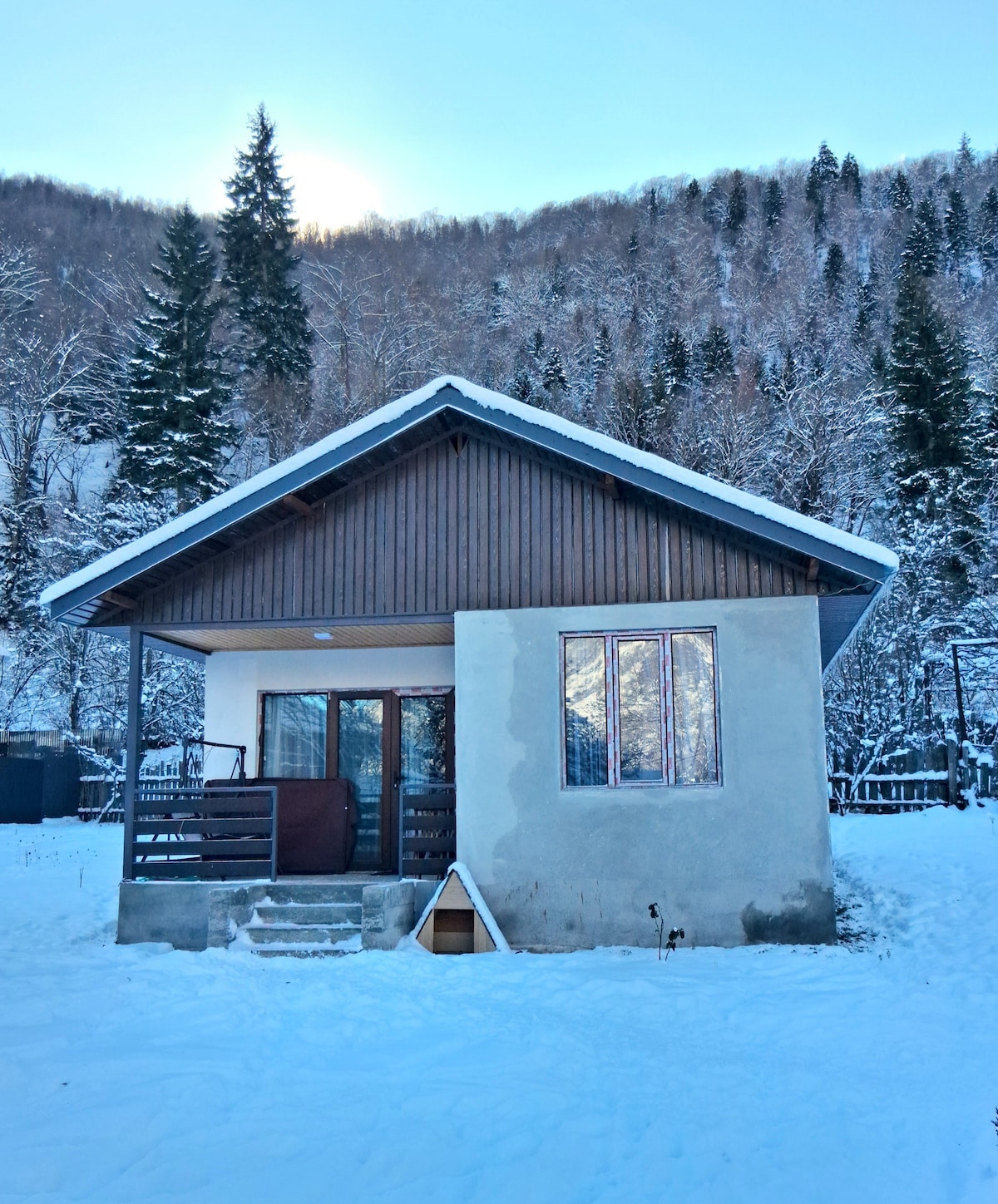 Welcome to our charming 2-bedroom house nestled in the tranquil Zindisi settlement within the enchanting Forest Haven Retreat in Surami. Located in 50 meters from the Lesia Ukrainka House Museum, 650 meters from Iron Water, surrounded by spruce forest and the soothing sounds of nature, our cozy retreat offers a perfect blend of comfort and serenity. Enjoy the crisp mountain air on the patio or courtyard, or take a leisurely stroll through the lush forest trails just steps away from our house.