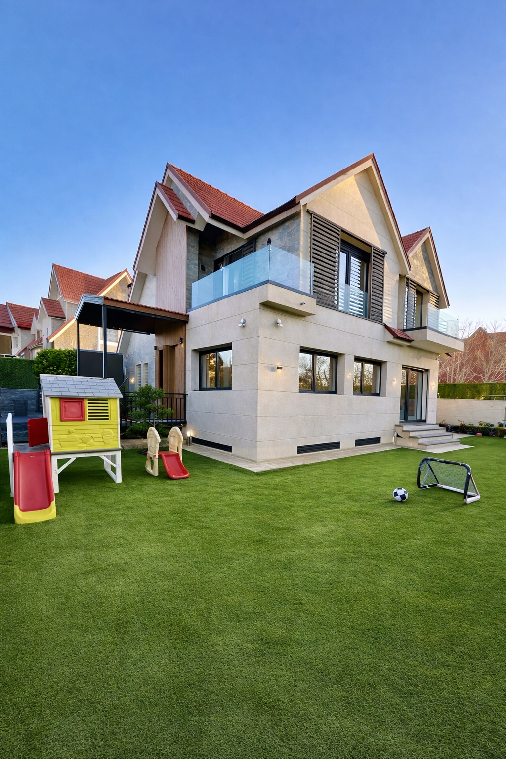 The house is located in Morocco, in the city of Ifrane. It has all the necessities. It has two living rooms, 5 bedrooms, 5 bathrooms, and two kitchens. It has a garden and a garage for cars. The house is located in the city center, in a quiet neighborhood.