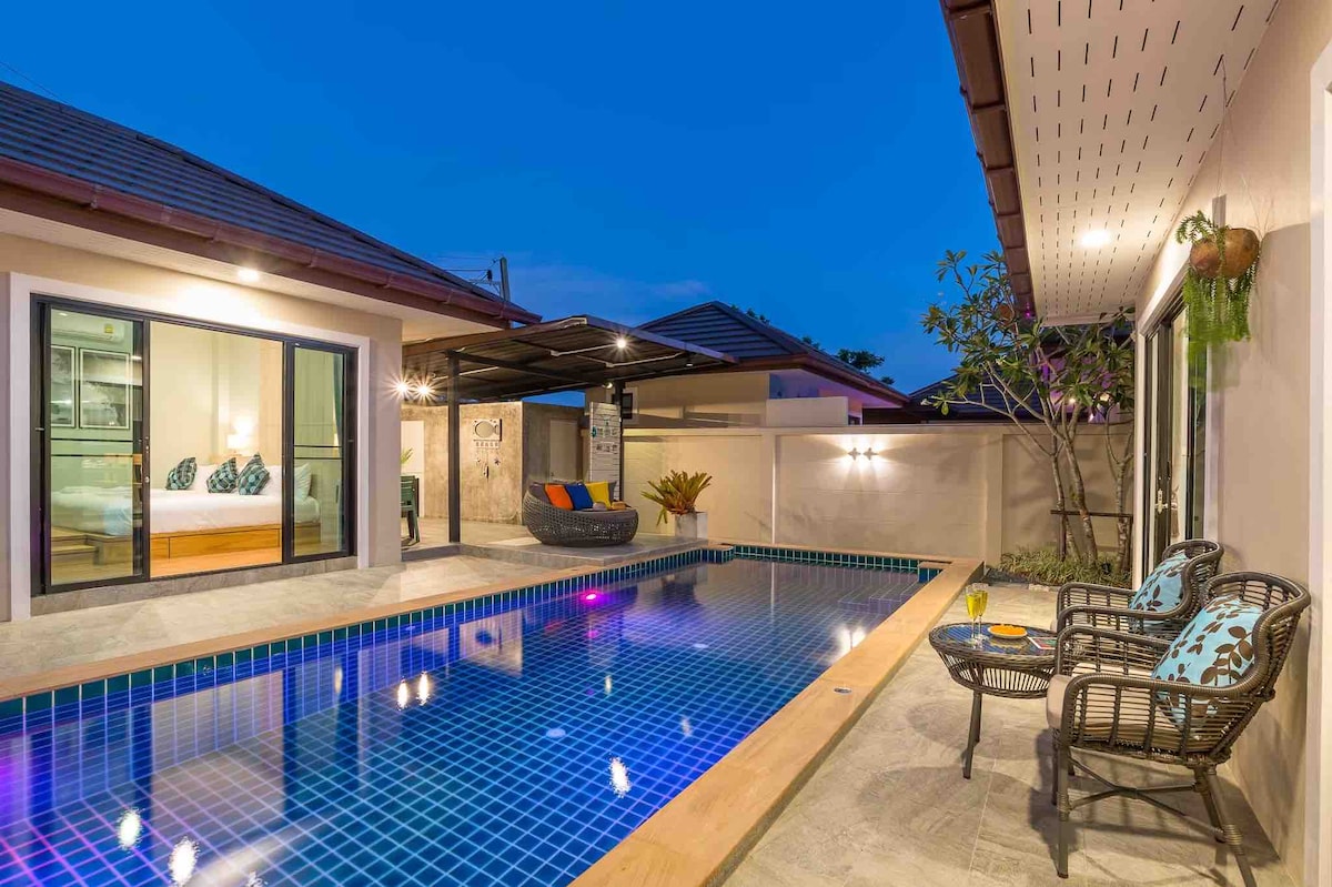 Relax in a quiet private pool villa designed for comfort and privacy. The interior is thoughtfully arranged to feel cozy, clean, and easy to live in, while the highlight of the villa is its generous outdoor space. Enjoy a large private swimming pool, an open front yard, and a peaceful backyard garden — perfect for relaxing, dining, or spending time together. With both indoor and outdoor dining areas, the villa offers a calm and comfortable stay that truly feels like home.
