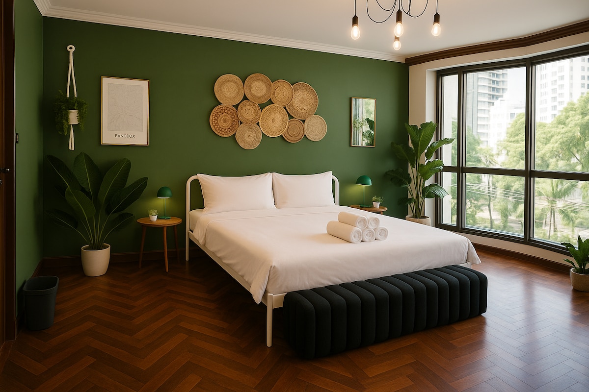 TEN DOM ZNAJDUJE SIĘ NA LIŚCIE 11 NAJLEPSZYCH MIEJSC NA POBYT W BANGKOKU WEDŁUG CONDÉ NAST TRAVELER 2025 Powody, dla których musisz tu zostać ✓Idealna lokalizacja: 3-5 minut spacerem do stacji Saphan Taksin i przystani Sathorn Central ✓Przystępne cenowo i dla maksymalnie 5 gości Dom ✓dwupiętrowy ✓Słynne uliczne jedzenie i restauracje z przewodnika Michelin są w zasięgu ręki ✓Kilka kroków od basenu na dachu, kawiarni, 7-11, supermarketu, barów ✓Bezproblemowe samodzielne zameldowanie i odbiór z lotniska ✓Najlepsza okolica i przewodnik po Bangkoku, który pokochasz ✓5-gwiazdkowa obsługa od SUPERHOSTA