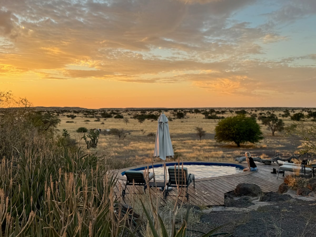 This very unique, private cabin is truly special because of the beautiful views of Namibian fauna & flora, wild animals grazing at the lake below (or coming to your doorstep!🤩) and magnificent sunsets! This cozy, romantic cabin is selfcatering, but meals can be ordered at the Farmstay where you'll meet tame free-roaming wild animals. The price is per person per night. A sleeper couch (for a small kid) is in the study room. Access with a very small sedan not recommended, 4x4 vehicle is better.