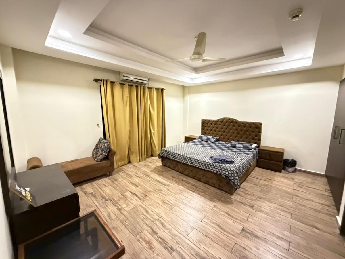 Witaj w @blueoakresidences Przestronne mieszkanie o powierzchni 1500 stóp kwadratowych w F-11/1 Islamabad z 2 sypialniami z łazienką, każda z prywatnym balkonem, toaletą, zasilaniem awaryjnym UPS, szybkim Wi-Fi, samodzielnym zameldowaniem i 58-calowym telewizorem Smart TV. Kuchnia, ciepła woda, bezpłatny parking, całodobowa winda w cenie. W przypadku grup liczących więcej niż 4 osoby zapewniamy 2 dodatkowe materace podłogowe dla maksymalnie 6 gości. Gondola dostępna na życzenie na 3+ noce (5000 PKR). Kilka kroków od Loafology, Nando's, Asian Wok, KFC, Al-Fatah. Park dla rodzin tuż obok.