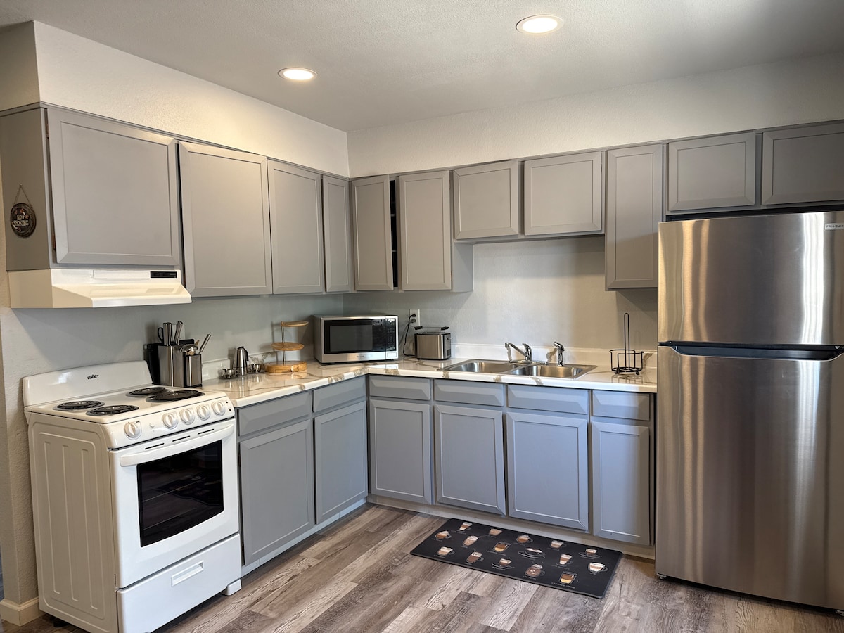 Witamy w Hope Ave Oasis, centralnie położonym miejscu wypoczynku w Kingman w stanie Arizona, zaprojektowanym z myślą o wspólnym relaksie i rozrywce. Ciesz się w pełni zaopatrzoną kuchnią, fotelami do masażu, uspokajającą wodotryskiem, rozkładanymi fotelami z podgrzewaniem i masażem oraz 80-calowym telewizorem OLED na wieczory filmowe. Mnóstwo gier i łamigłówek, blisko wszystkiego, a jednak prywatne i ciche – prawdziwy dom z dala od domu.