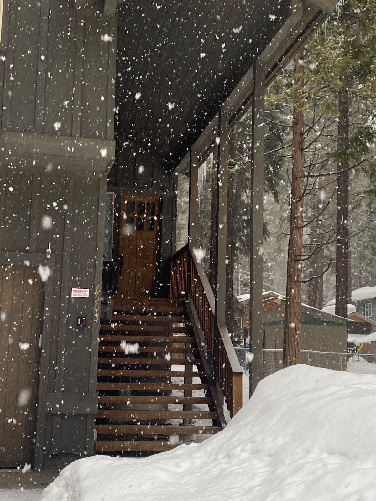 Zupełnie nowy i ekskluzywny dom wakacyjny, położony w samym sercu lasu między Truckee a jeziorem Tahoe. Otwarty i przestronny plan piętra z wysokimi sufitami, profesjonalnie zaprojektowanym wnętrzem, 2 dużymi salonami, dużym granitowym kominkiem gazowym, ładowarką Tesli, klimatyzacją, 3 balkonami, łóżkami piętrowymi, 2 łazienkami, w pełni wyposażoną kuchnią, 70-calowym telewizorem HDTV, YouTubeTV i subskrypcją Disney+, grillem gazowym Weber i innymi udogodnieniami. Dzieci uwielbiają pokój piętrowy!
