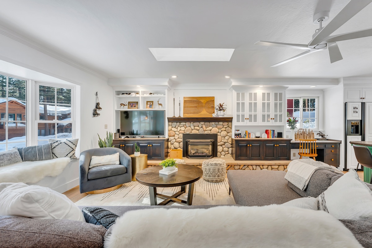 W Tahoe „przytulna” oznacza ciasną, a „chatka” oznacza starą. Nie tutaj! Całkowicie świeża i zmodernizowana nieruchomość jest idealna w zaledwie 5 minut do plaż i 8 minut jazdy na nartach. Jako stylowe miejsce dla dorosłych dla 1 lub więcej par lub miejsce przyjazne rodzinom, oferujemy bezpłatne dodatki, w tym: jacuzzi dla 8+, grill, bar, biuro, ogrzewany garaż na 2 samochody, ładowarkę samochodową, łóżeczko dziecięce, zabawki, materac typu queen, pełne pranie, kawę i przekąski - wszystko z lasem do spacerów za tylnymi drzwiami! Zezwolenie na wynajem krótkoterminowy: WSTR23-0082